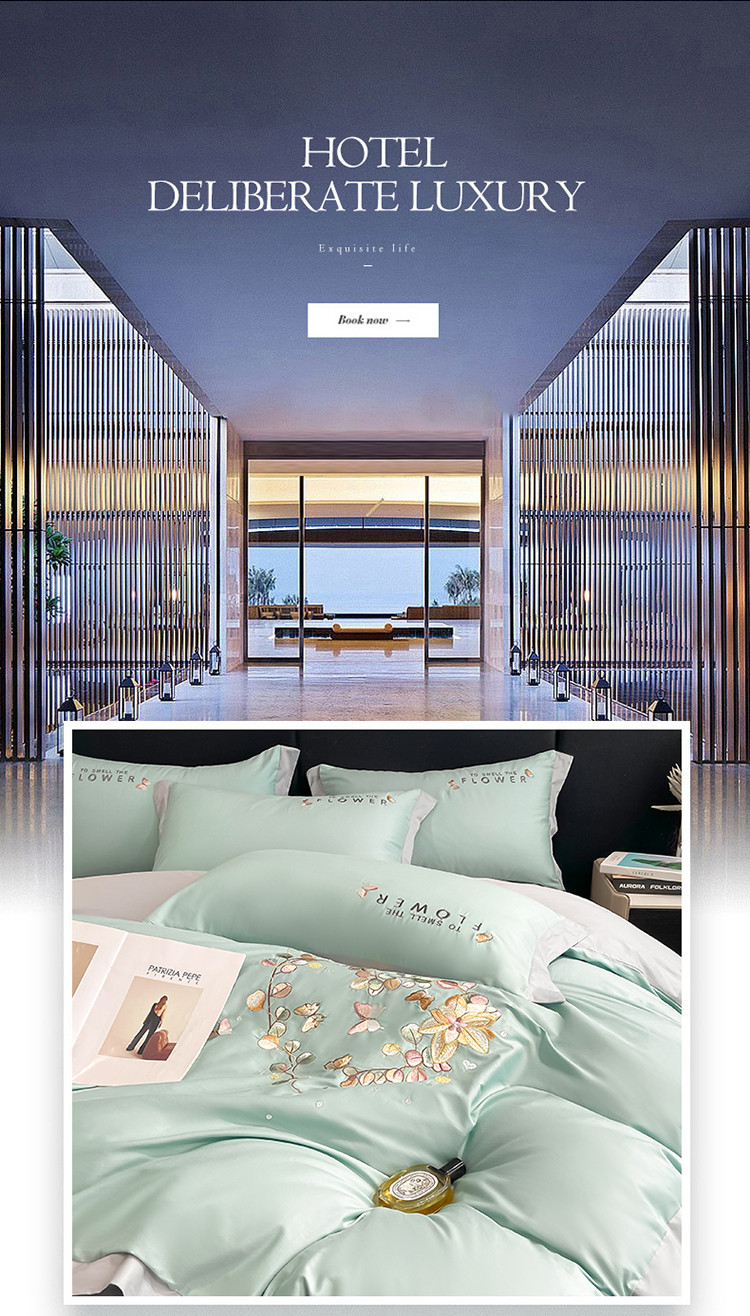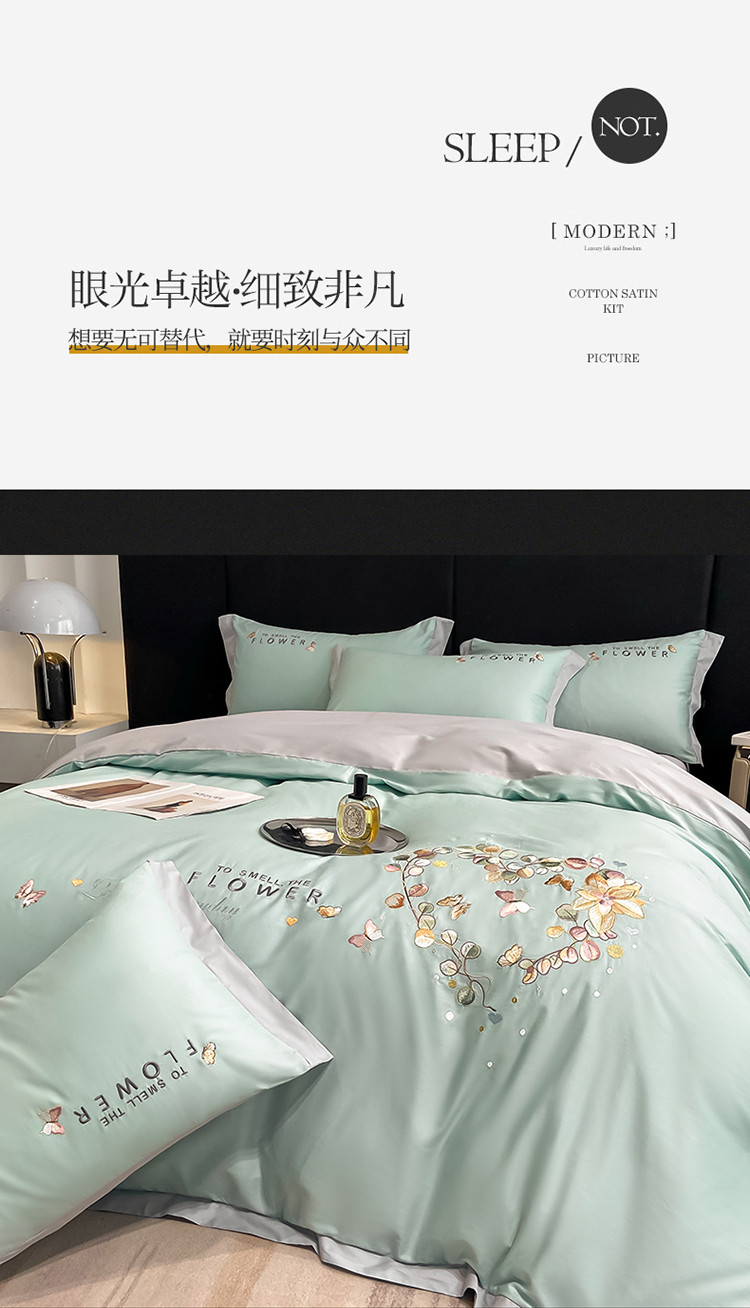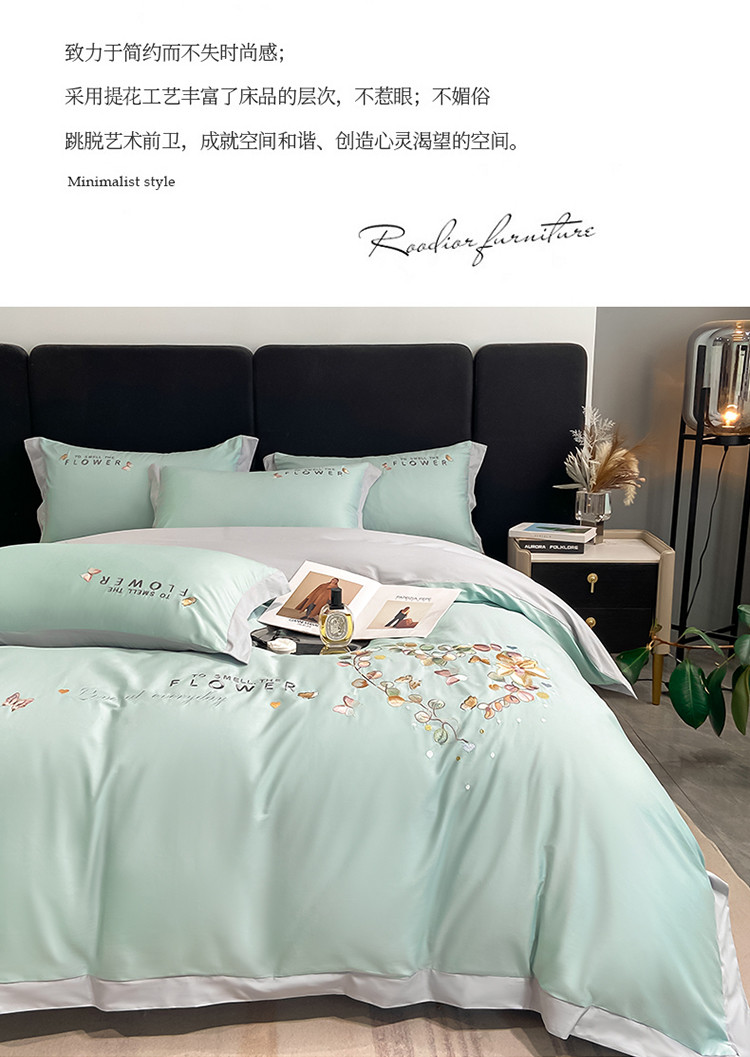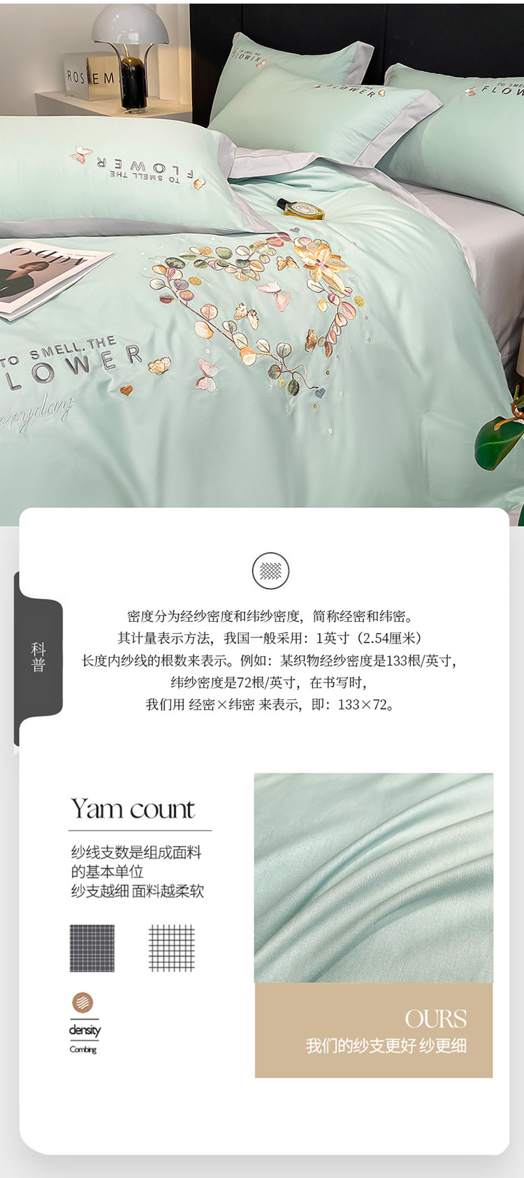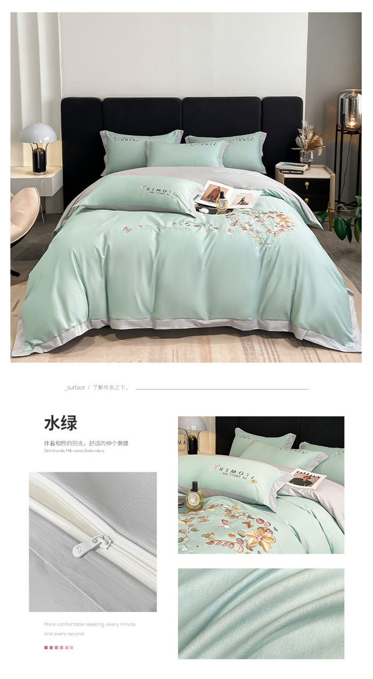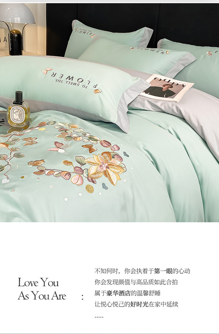 七七 2025新款绣花全棉四件套-布兰卡 水绿