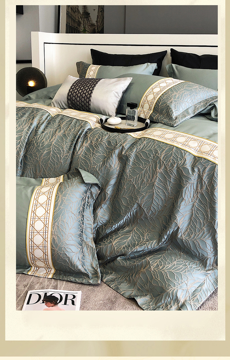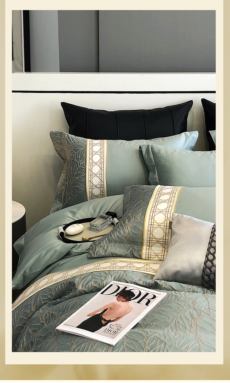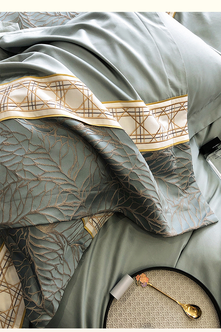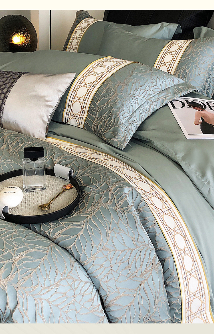雪夫人 2023年 罗浮宫印象100支高精密浮雕四件套 金枝玉叶-星海蓝