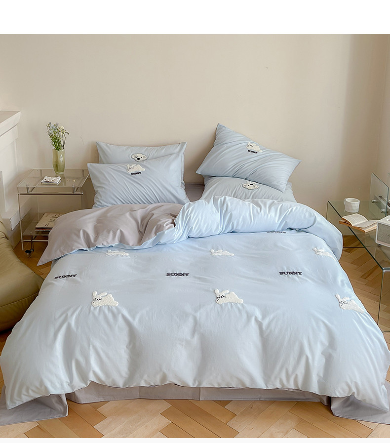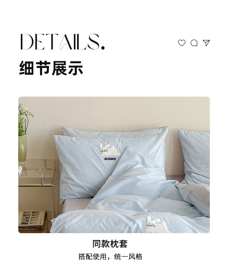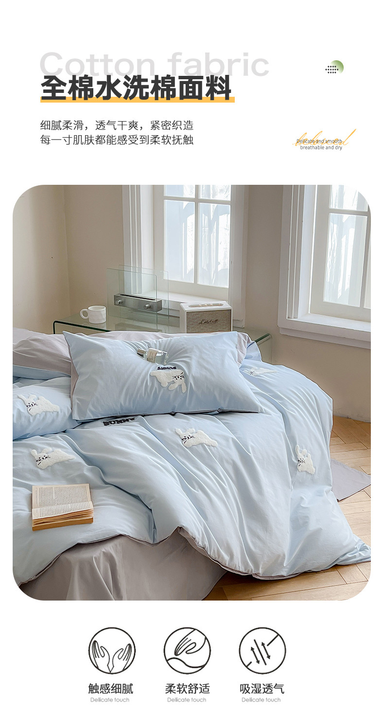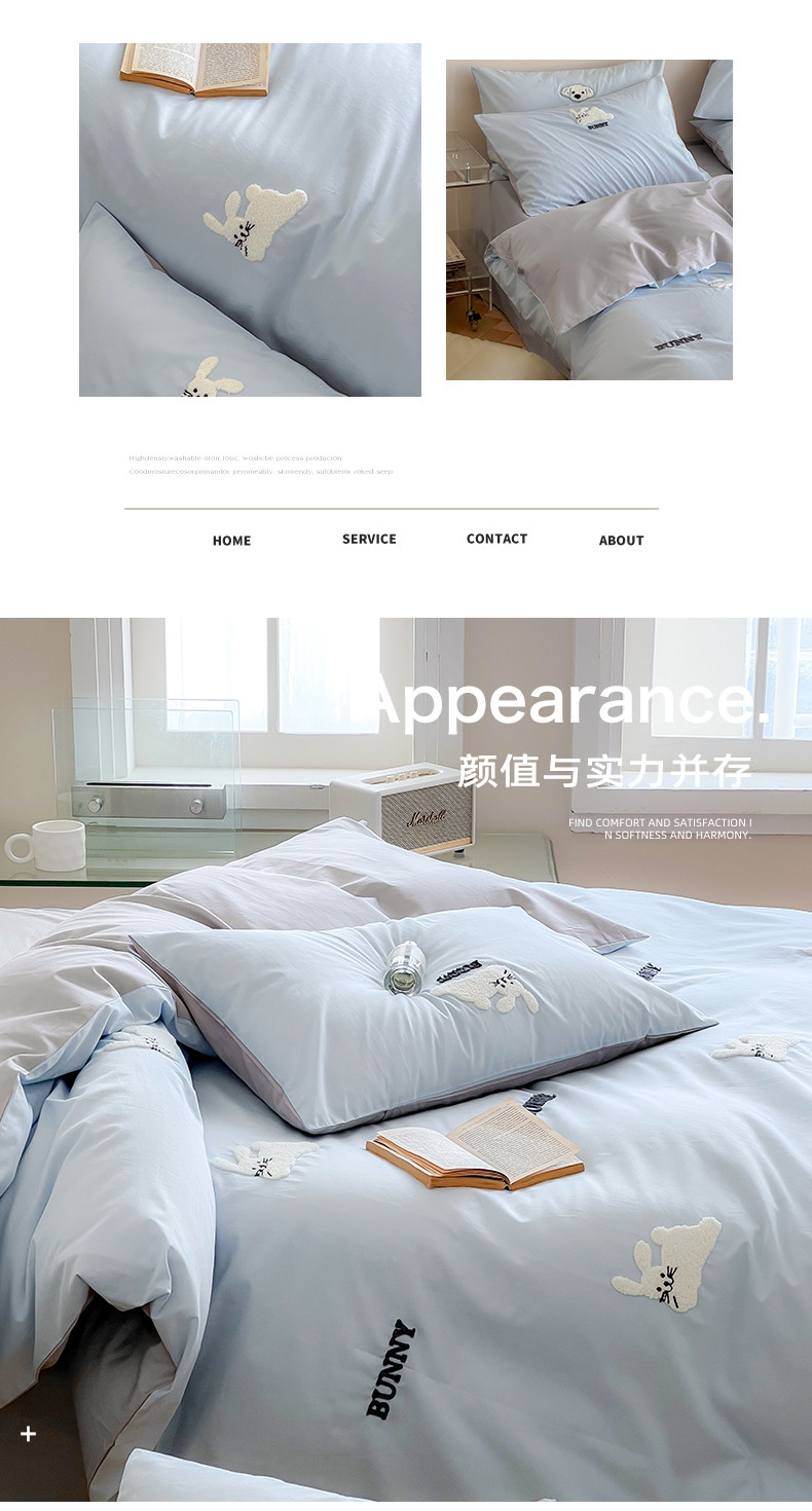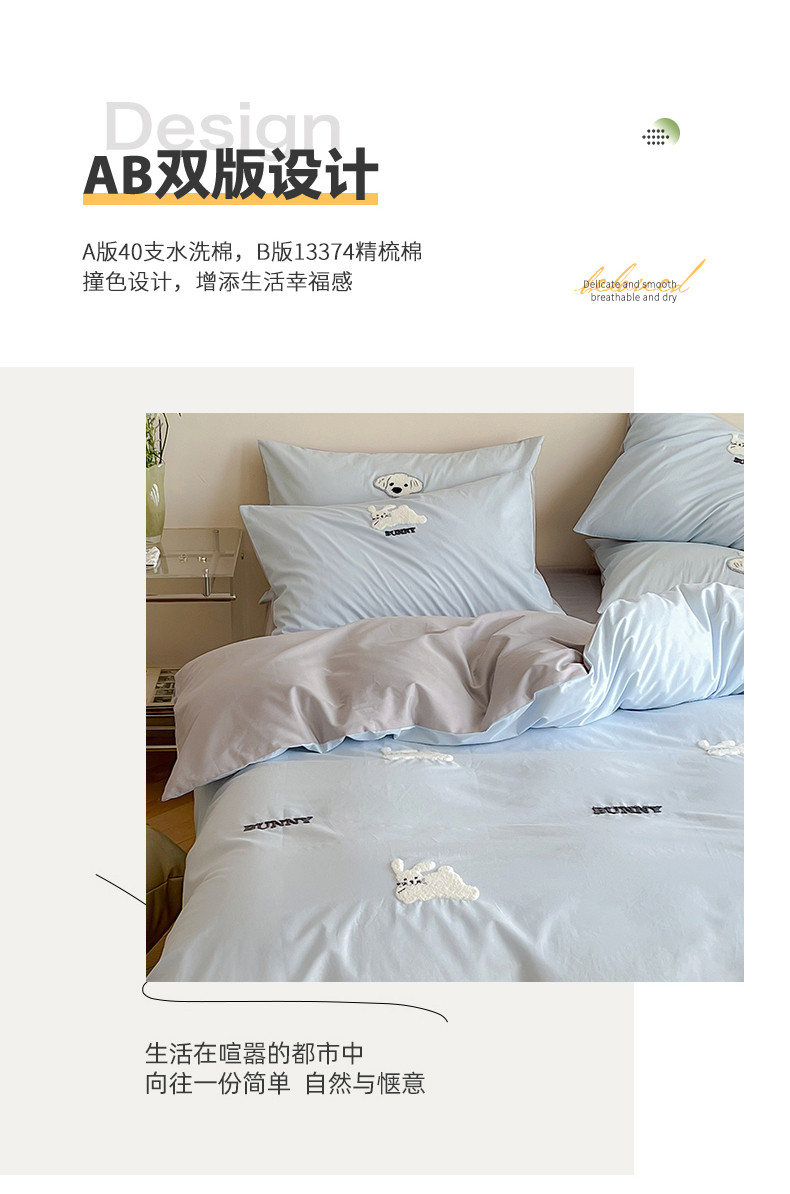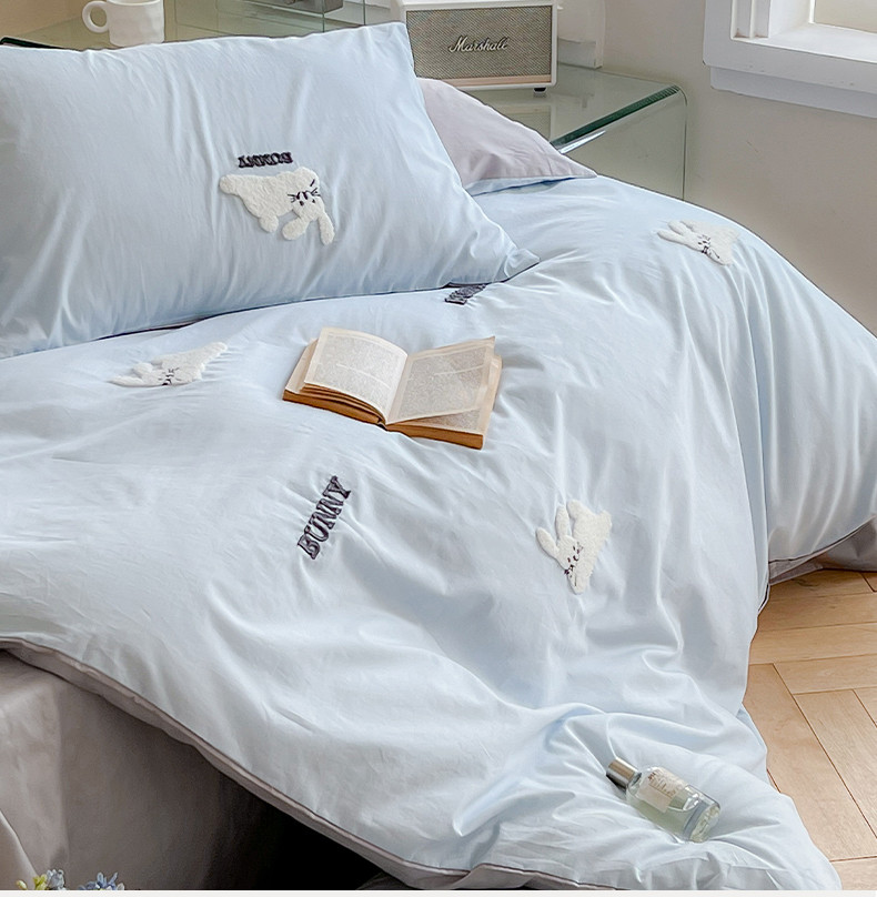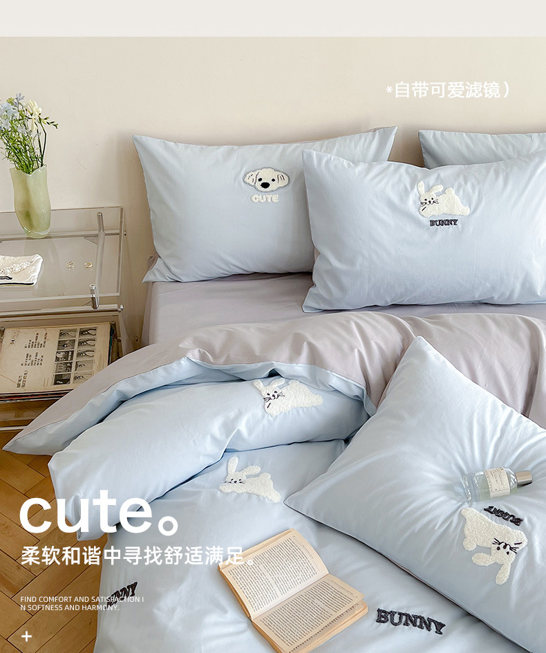 当前位置: 91家纺网 > 商品网购 > 床品套件 > 四件套 > 全棉普通四件套 > 时年 全棉水洗棉毛巾绣系列 40水洗-邦尼兔蓝