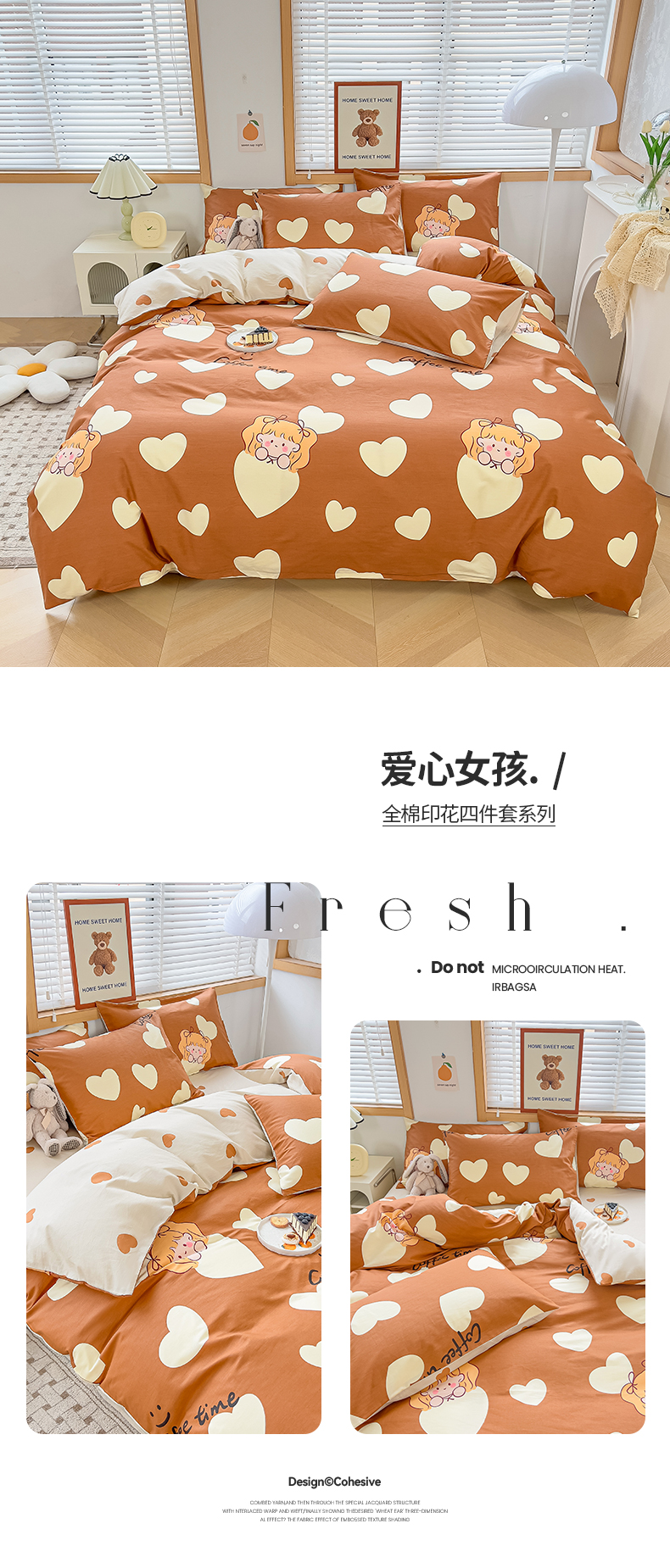 商品名称:寐眠 2023新款13372全棉印花四件套 爱心女孩