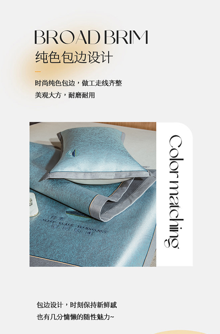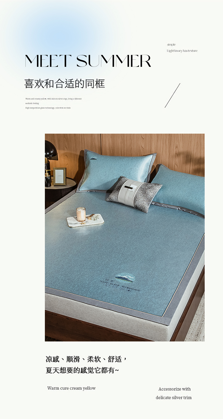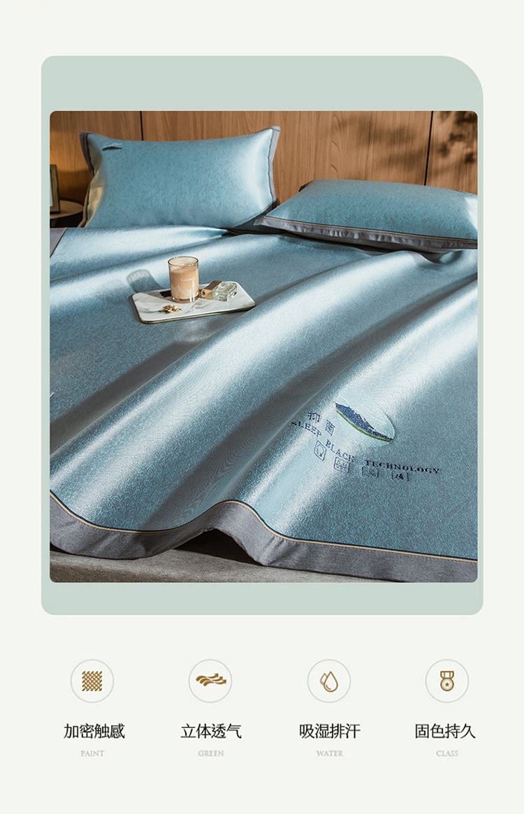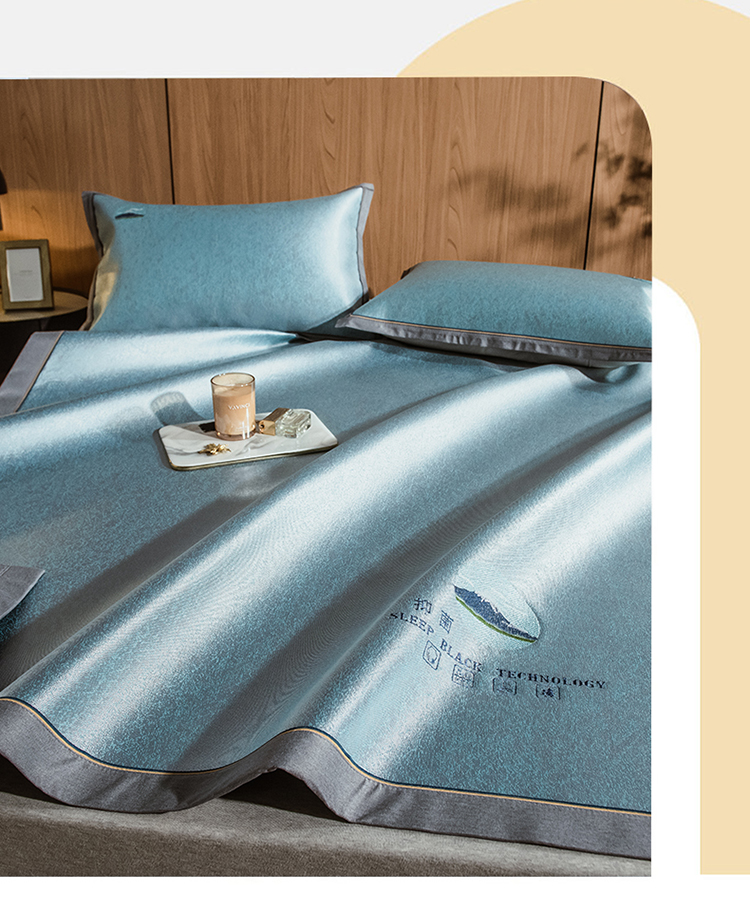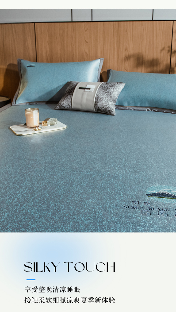 (总)全季家居 2023新款纯色凉感丝刺绣凉席,天蓝,灰色,粉色,绿色,草绿