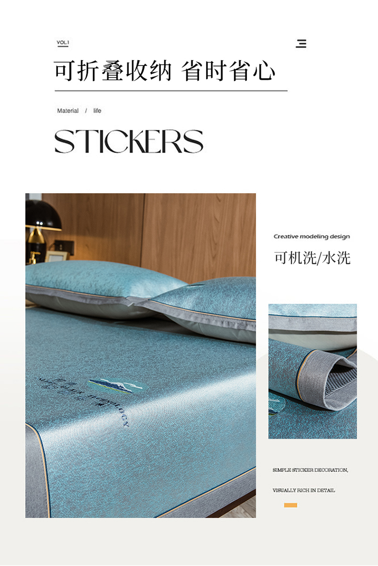 (总)全季家居 2023新款A类轻奢抗菌冰藤席,和意款-孔雀蓝,和意款-星际灰,和意款-薄荷绿,字母款-孔雀蓝,字母款-薄荷绿,字母款-星际灰
