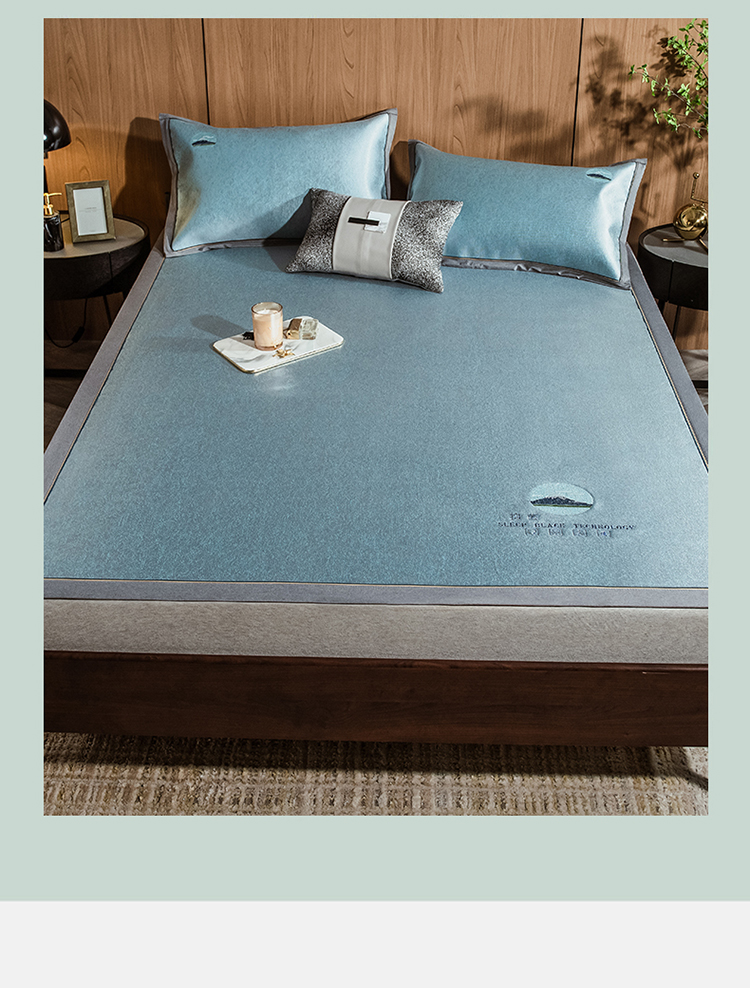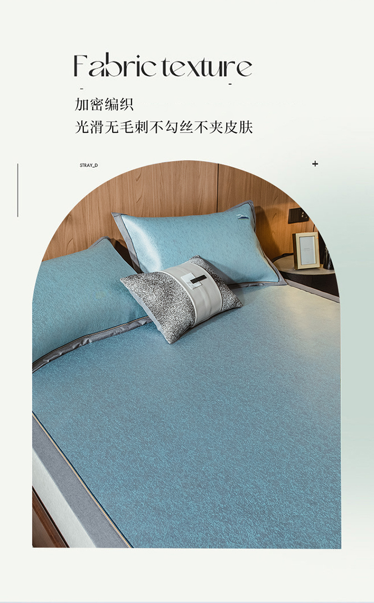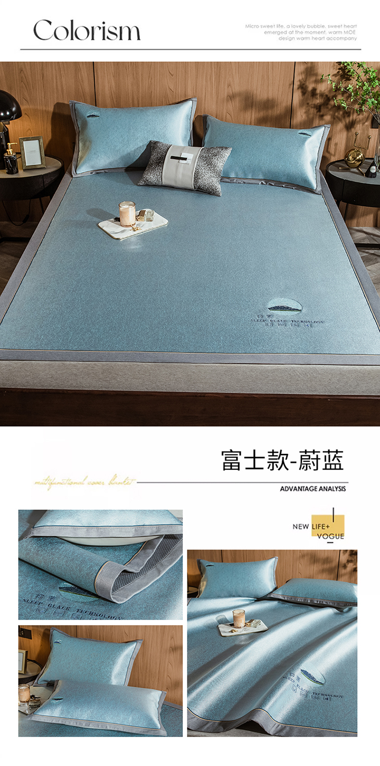 商品名称:2023全季家居纯色凉感肌理纹富士款冰丝凉席 富士款-蔚蓝