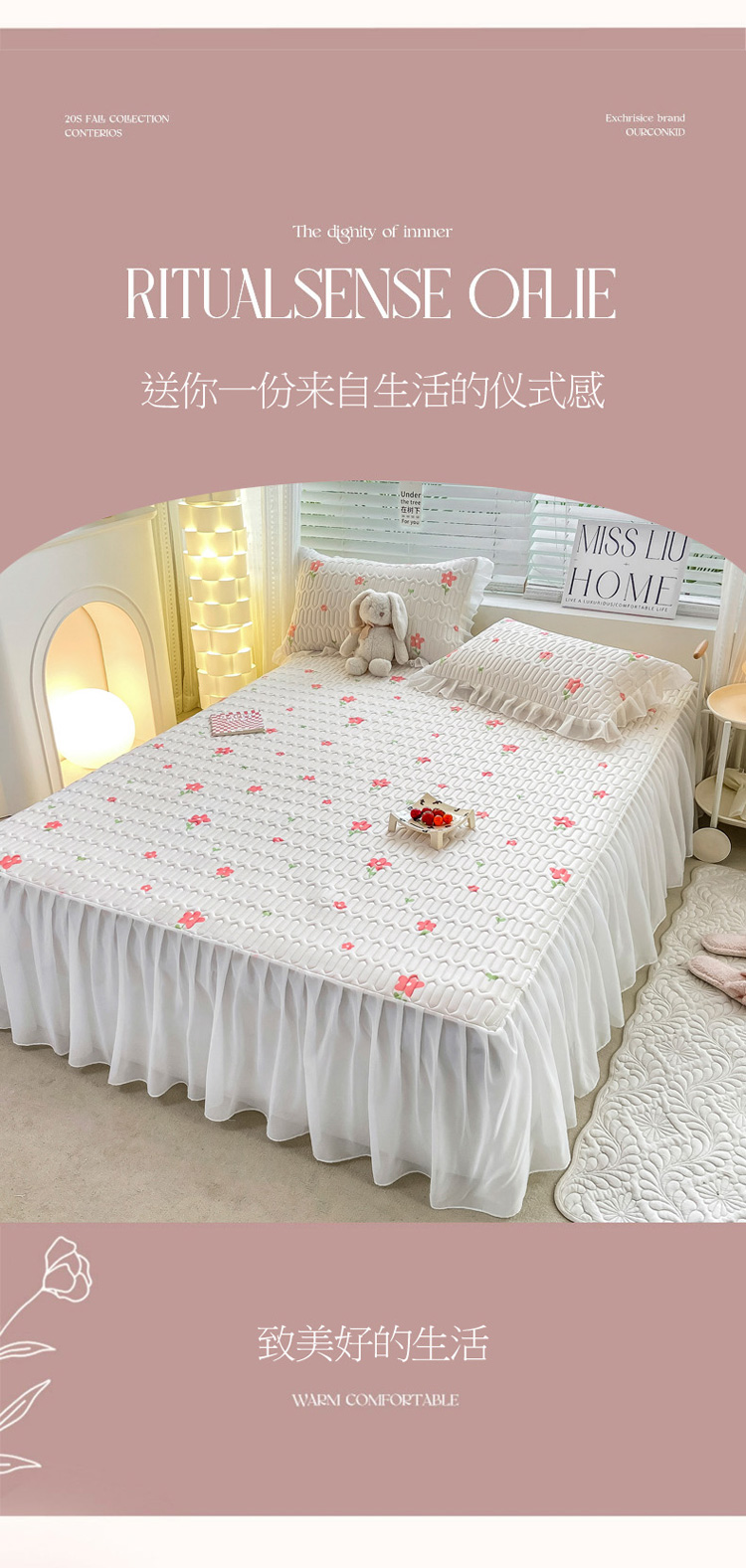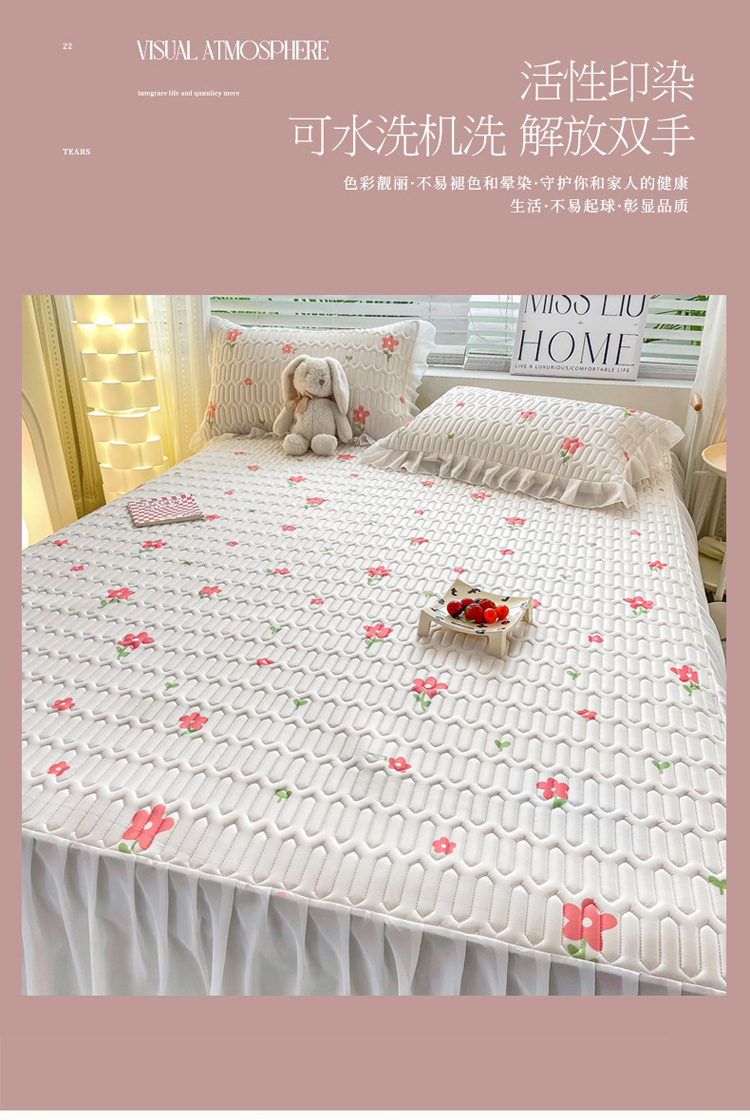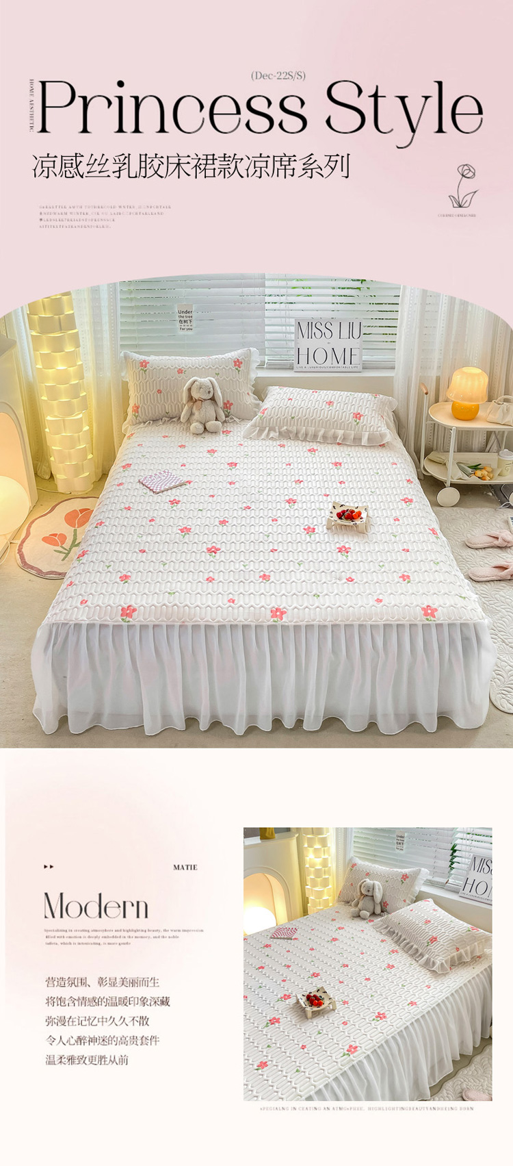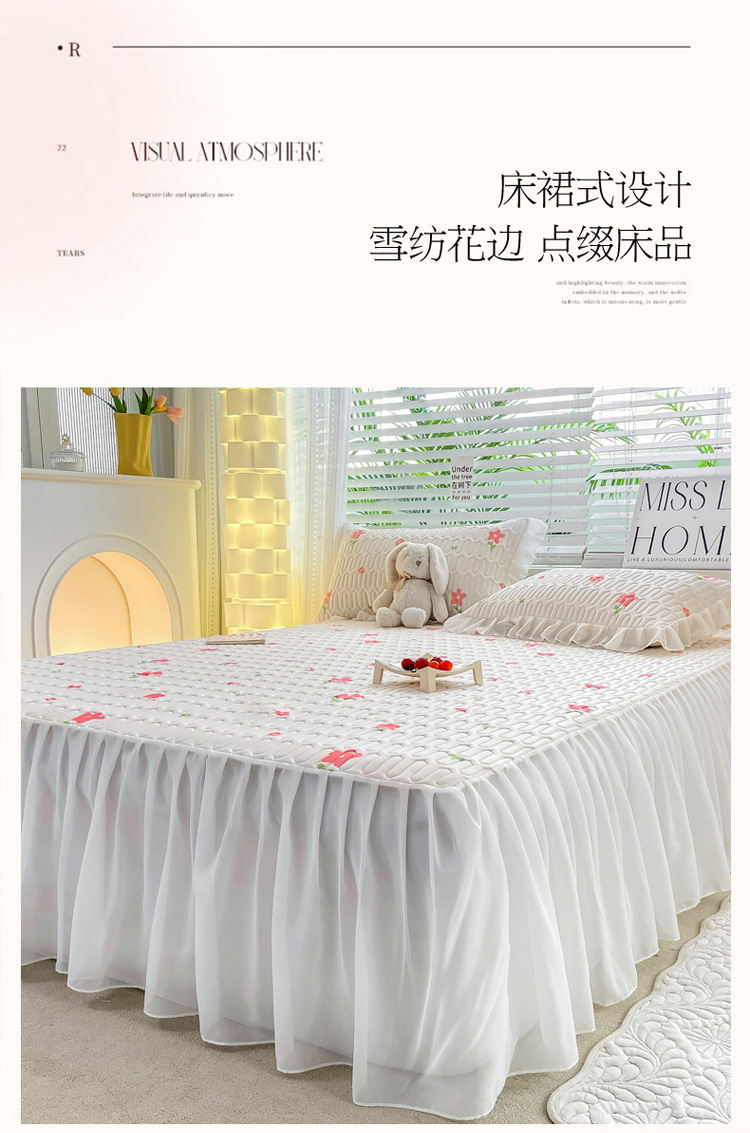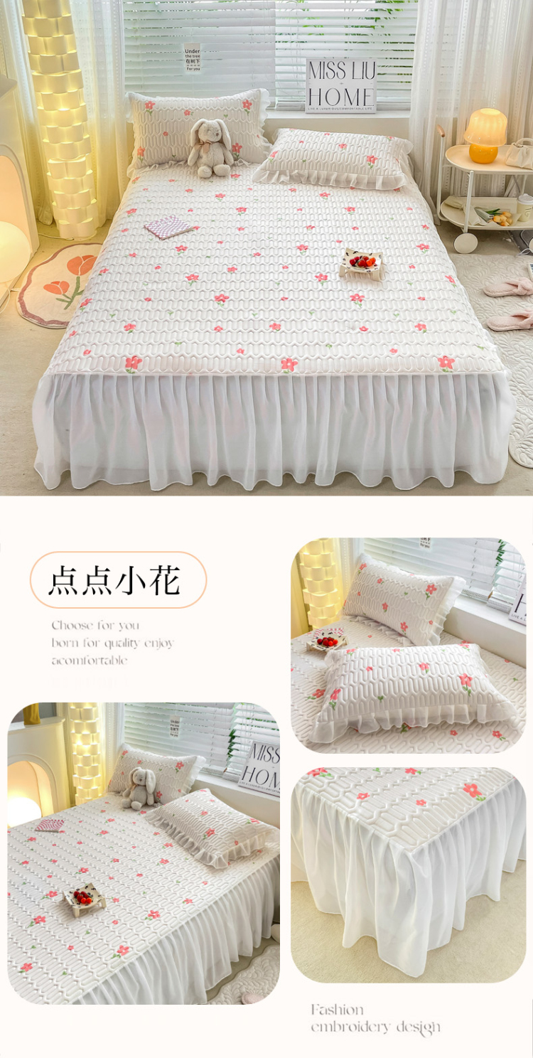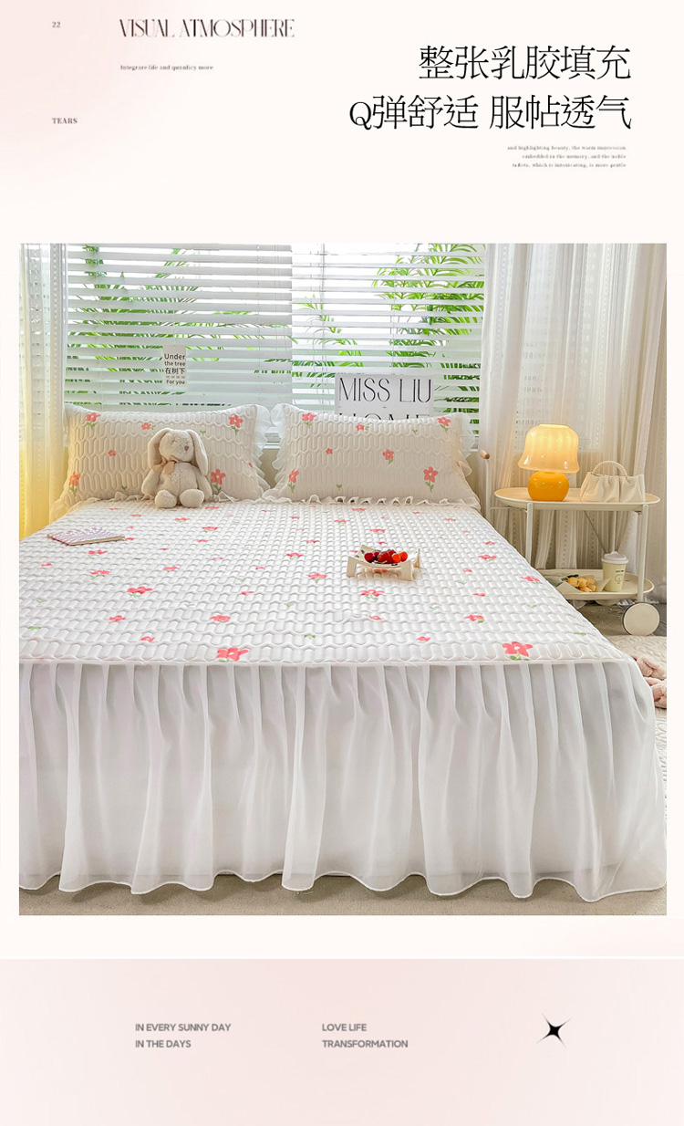 商品名称:慕澄 2023新款小版雪纺床裙款乳胶凉席 点点小花