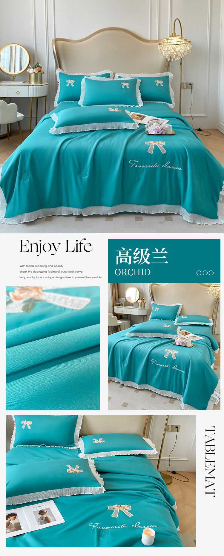 (总)伊人居 2024新款蕾丝款夏被四件套-梦娜系列,梦娜-抹茶金,梦娜-湖水兰,梦娜-珍珠粉,梦娜-薄荷绿,梦娜-香玉紫