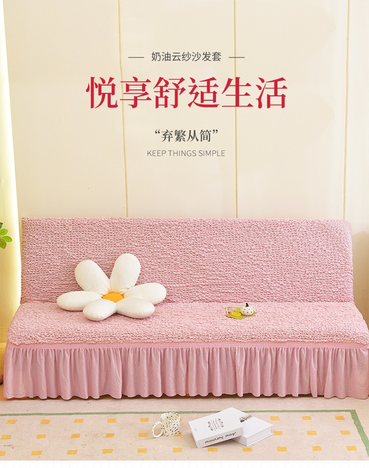 (总)启博家纺 2023新款高端日式皱皱布奶油云纱裙边沙发床套