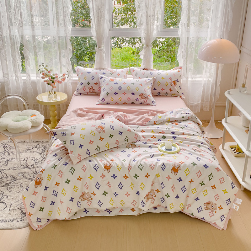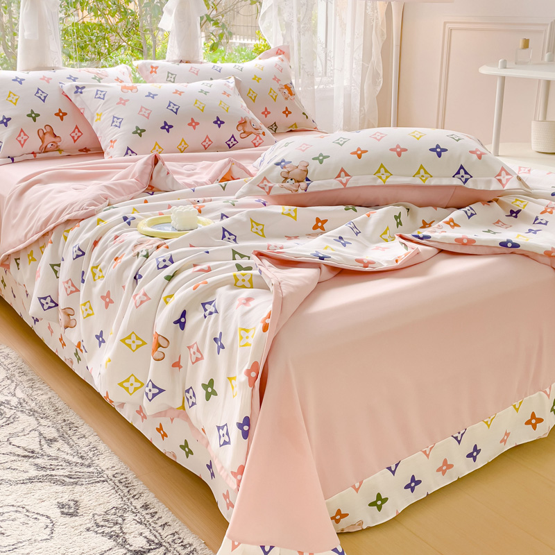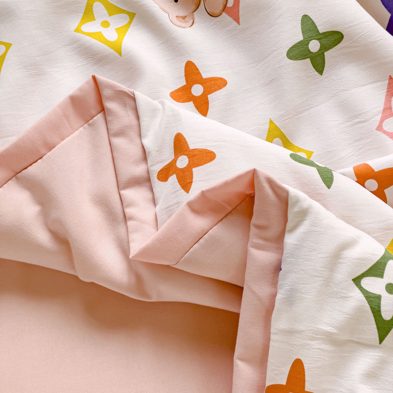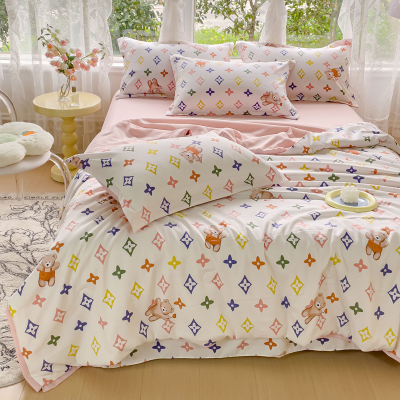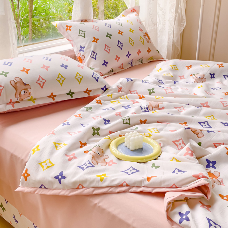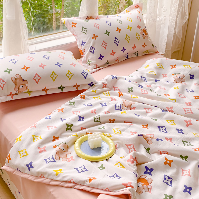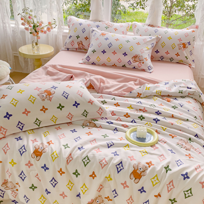芯贝儿 2023新款 水洗m麻双层纱小清新夏被四件套路易丝熊