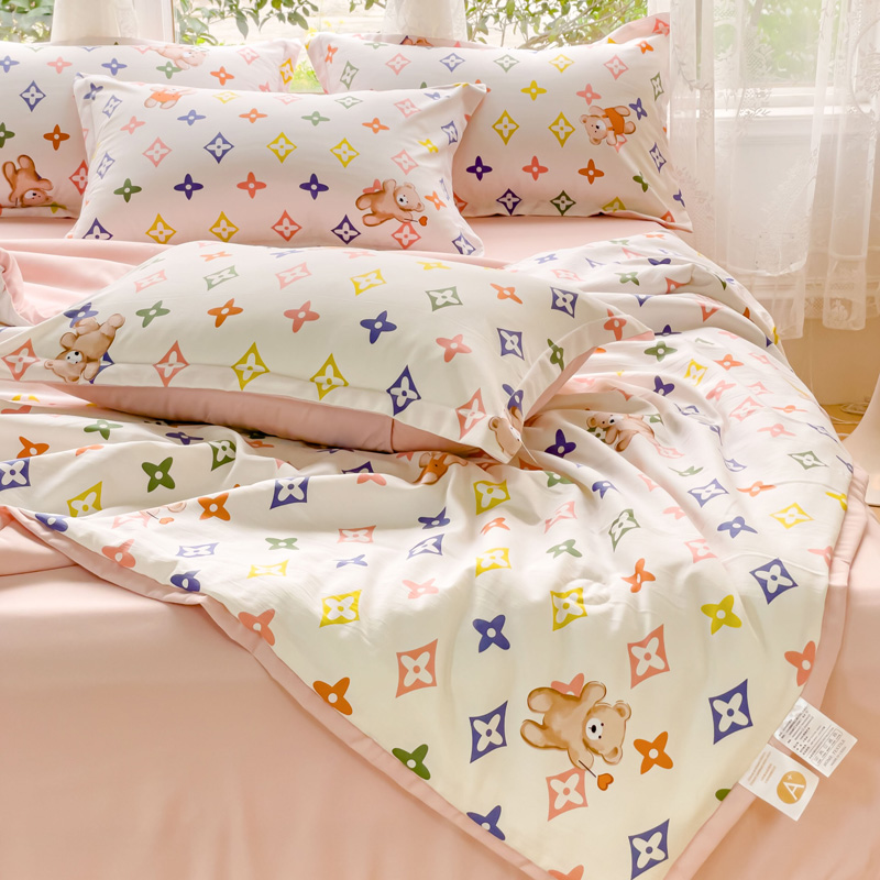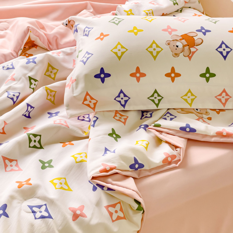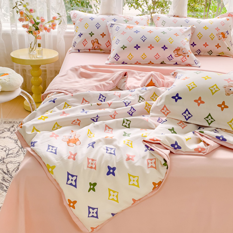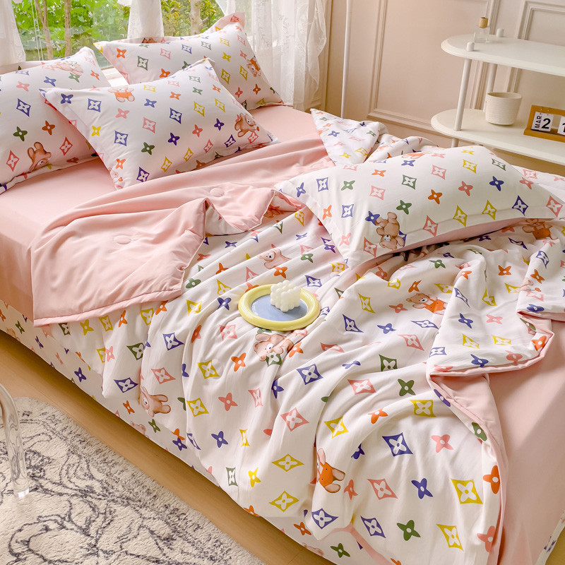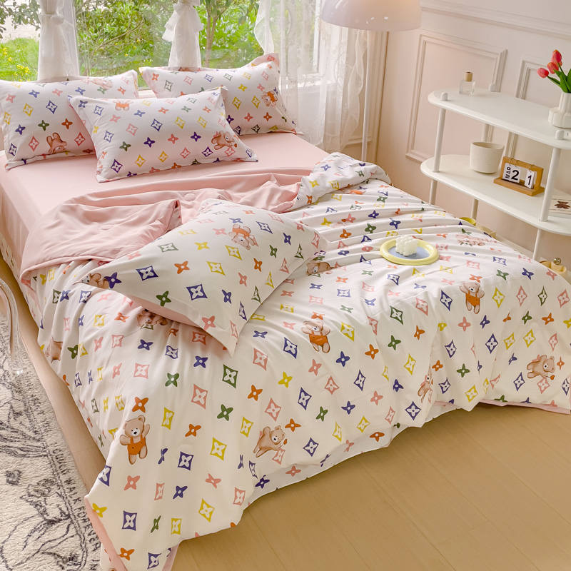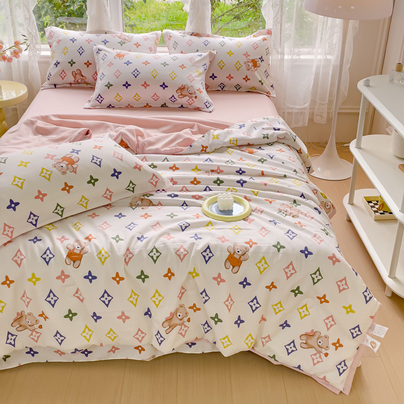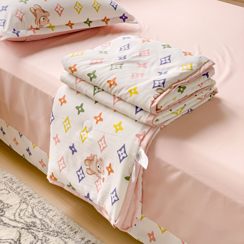 芯贝儿 2023新款 水洗m麻双层纱小清新夏被四件套路易丝熊