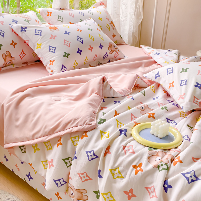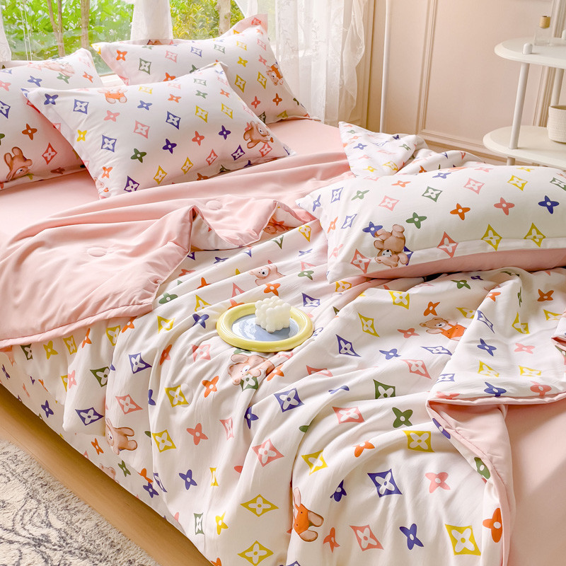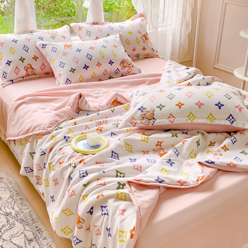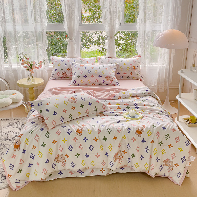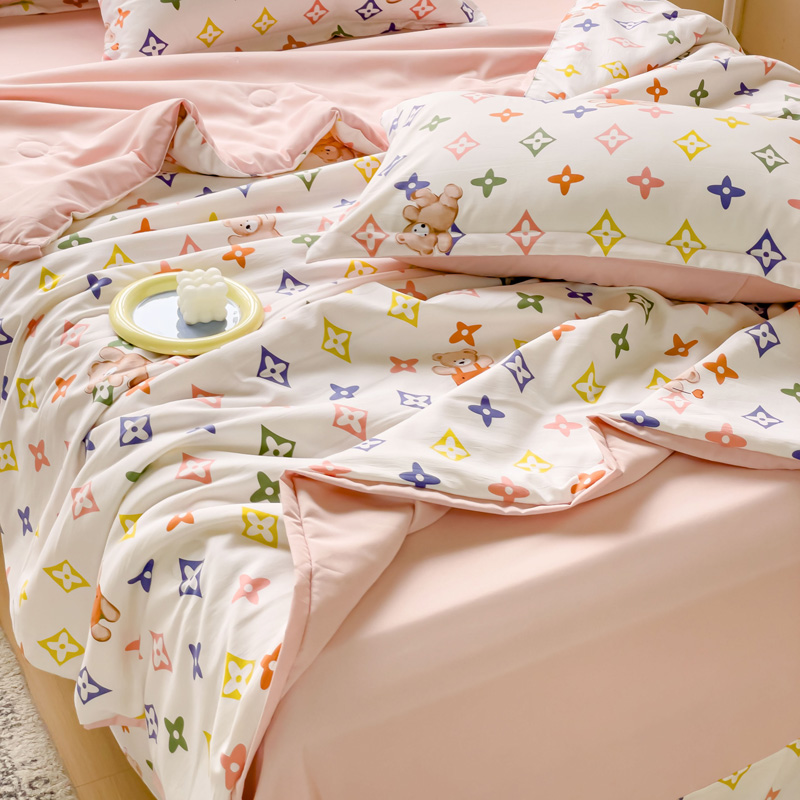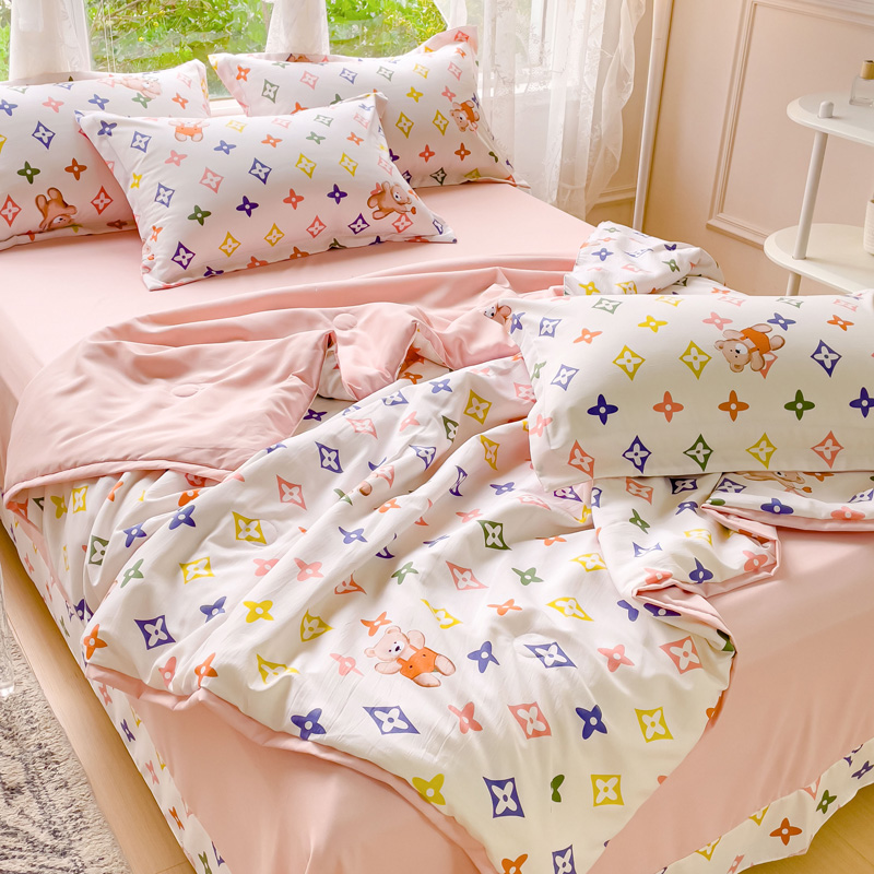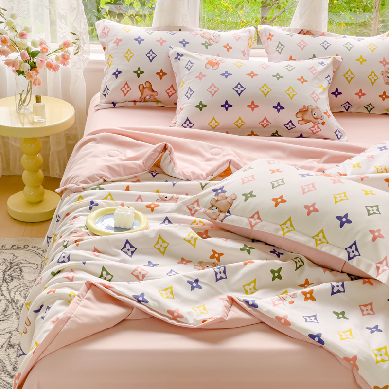 芯贝儿 2023新款 水洗m麻双层纱小清新夏被四件套路易丝熊