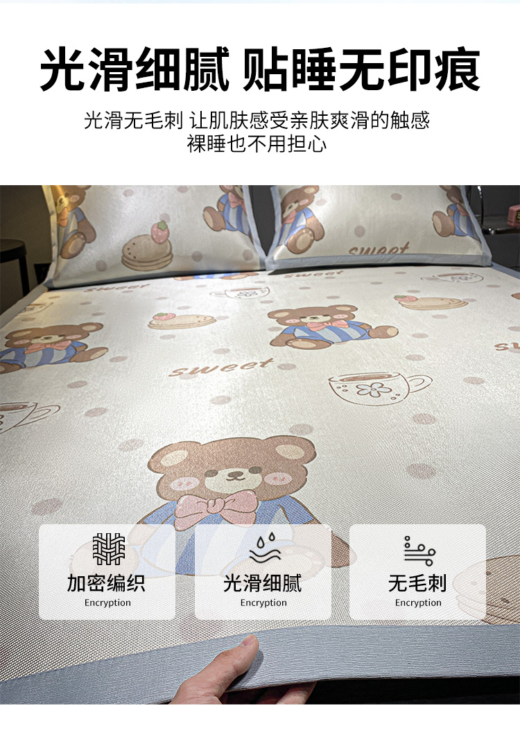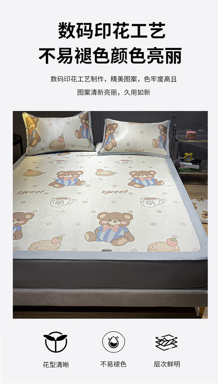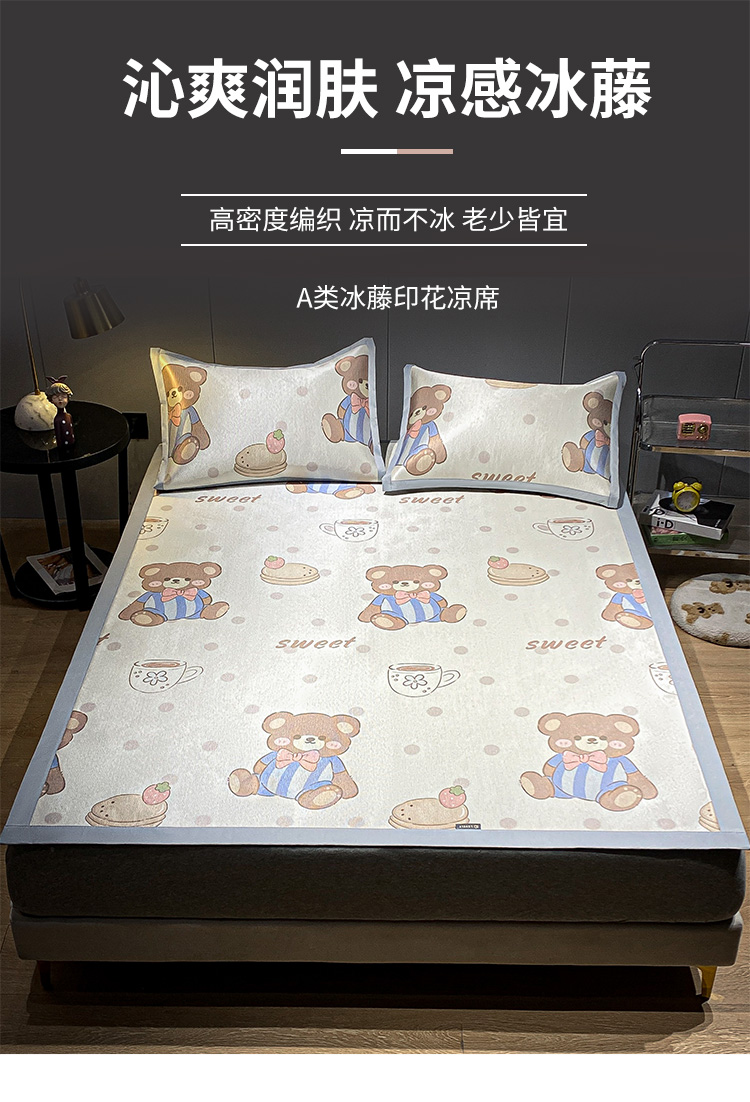 当前位置: 91家纺网 > 商品网购 > 床上用品 > 凉席 > 藤席 > 安哆啦2024新款数码印花冰藤席 蛋糕小熊