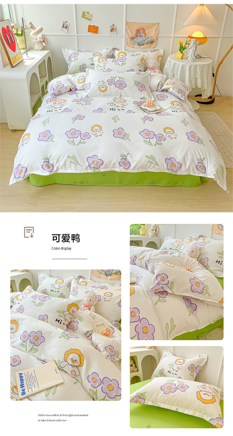 商品名称:花伞家居 2024直播网销斜纹加厚磨毛印花植物羊绒四件套 可爱鸭
