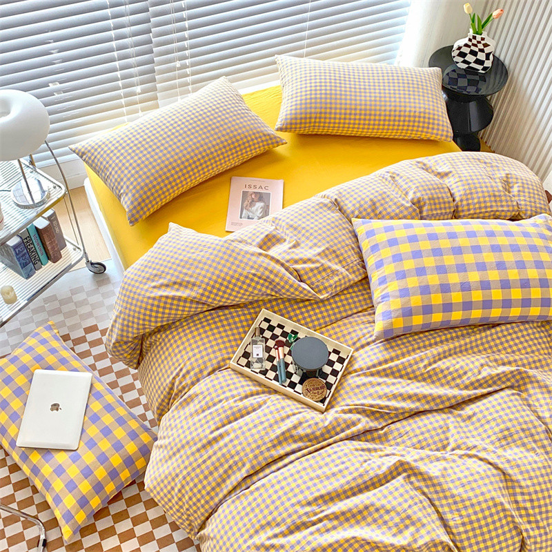 三沁2023新款直播爆款色织水洗棉单品系列单被套 紫黄小格
