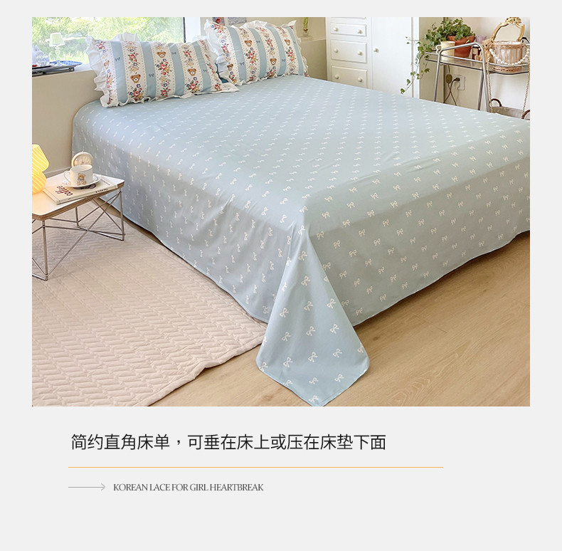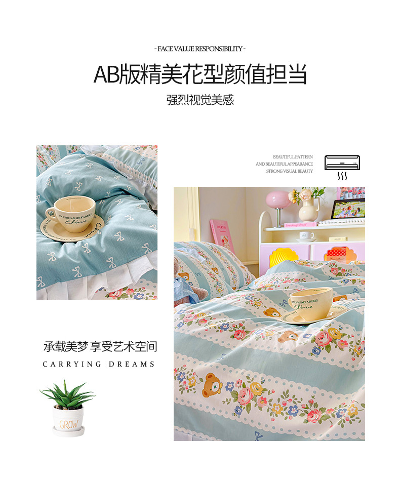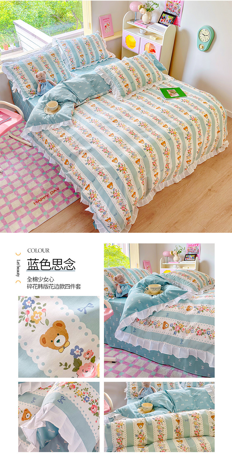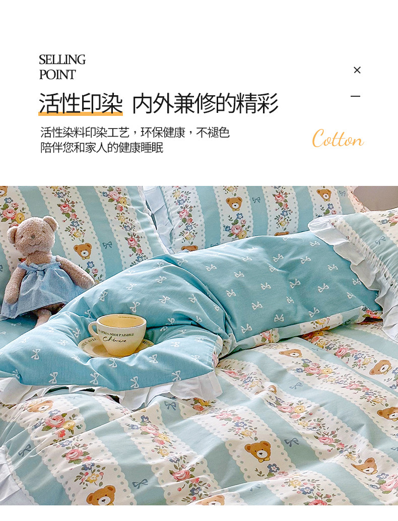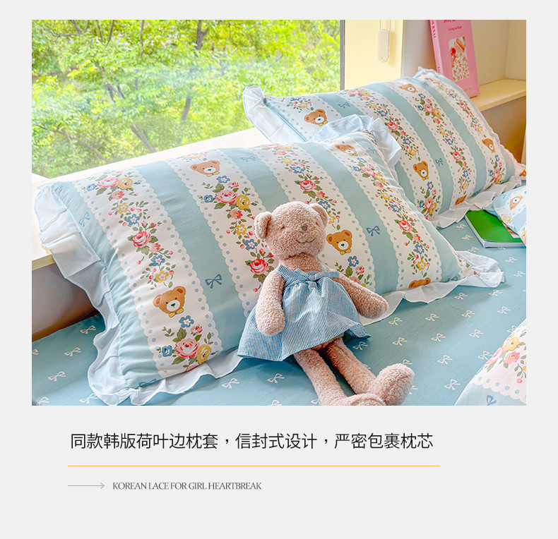 商品名称:桃子 2023新款仙气奶油碎花少女心韩版花边纯棉四件套 花边-蓝色思念