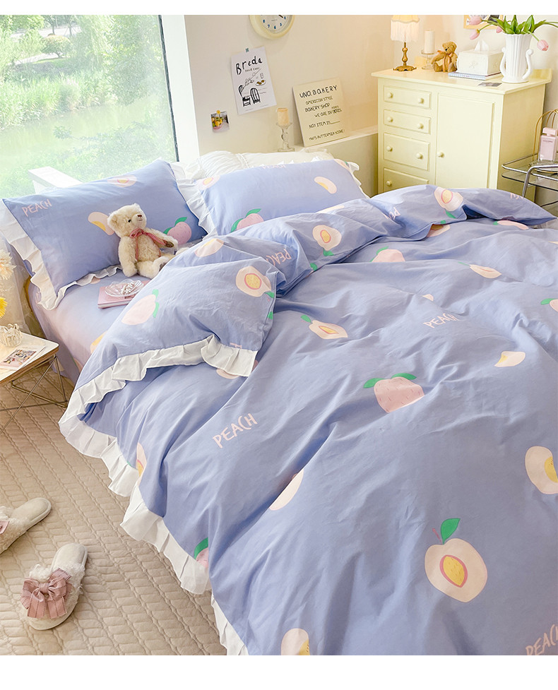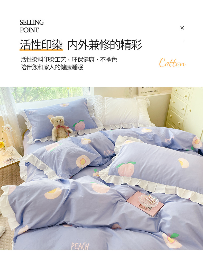 桃子 2023新款仙气奶油碎花少女心韩版花边纯棉四件套 花边-紫色桃子