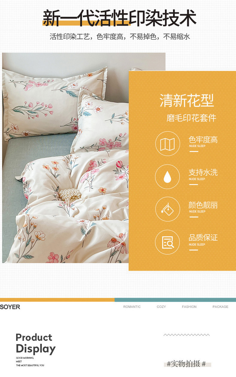 商品名称:世爵家纺 2023新款亲肤印花磨毛四件套 幽兰情思
