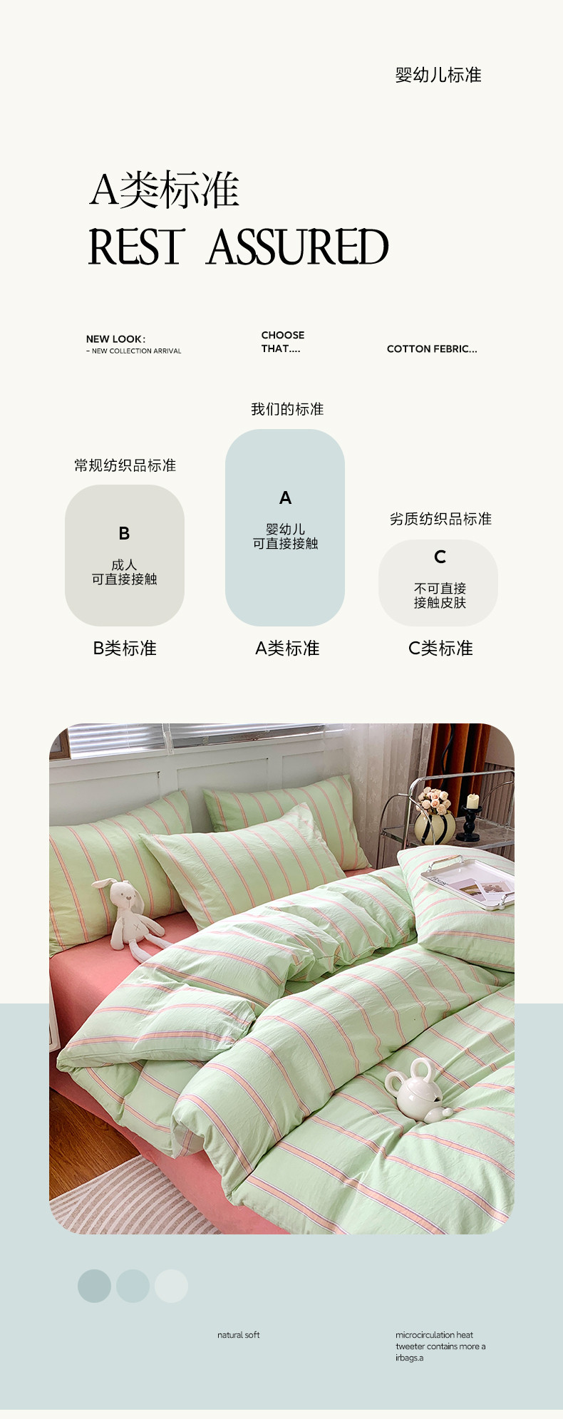 商品名称:莱茵家居 2024新款色织水洗棉小小系列四件套 翠小绿