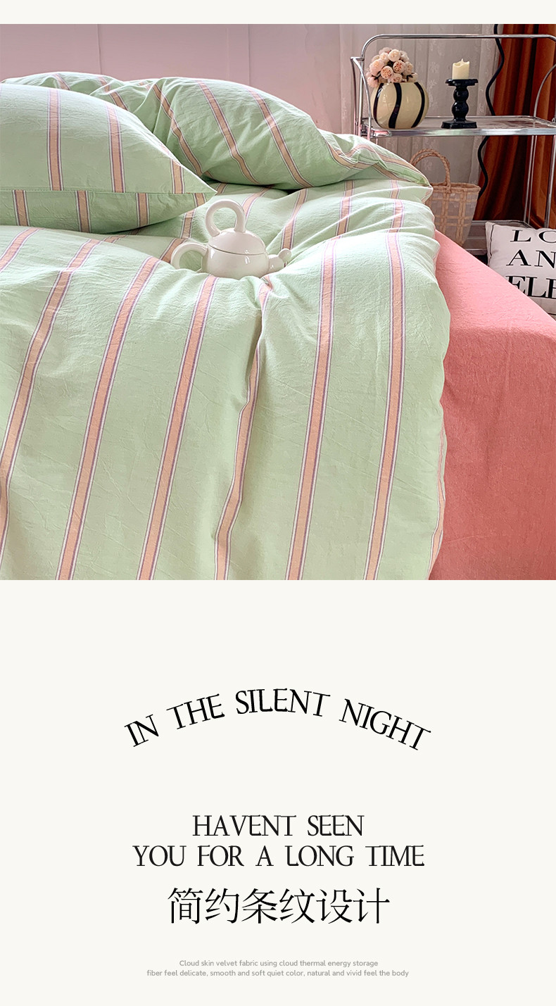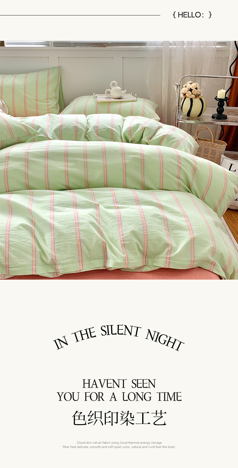 莱茵家居 2024新款色织水洗棉小小系列四件套 翠小绿