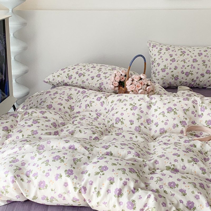 (总)昔可家纺 2023新款全棉小花系列四件套,柏林少女,小小的樱桃,紫色葡萄