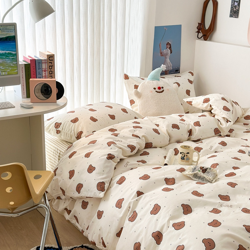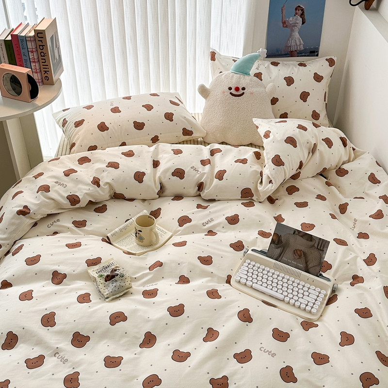 昔可家纺 2023新款全棉小卡通系列四件套 小小可爱熊咖