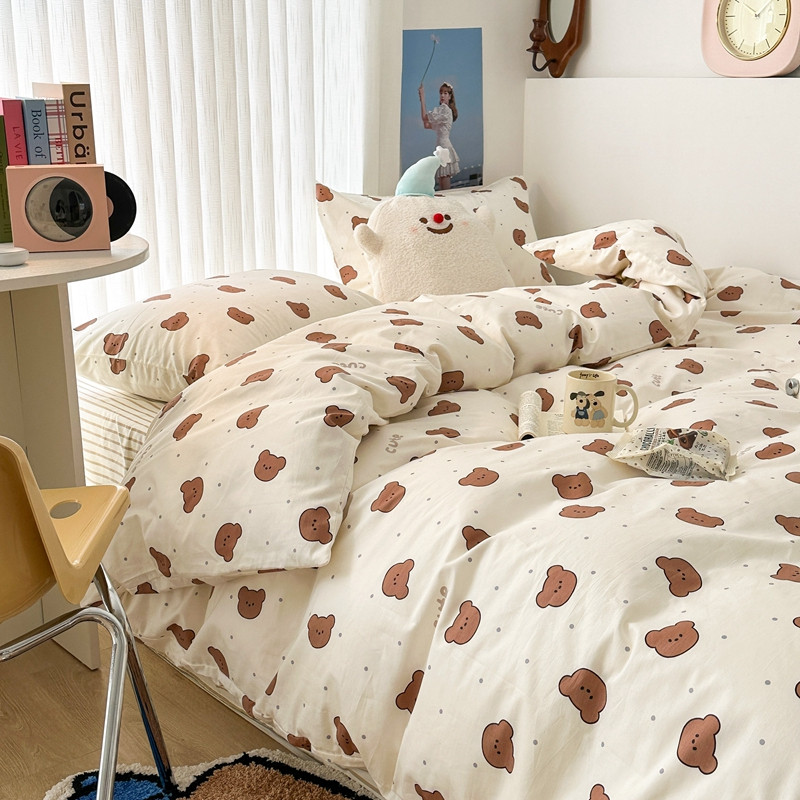 商品名称:昔可家纺 2023新款全棉小卡通系列四件套 小小可爱熊咖