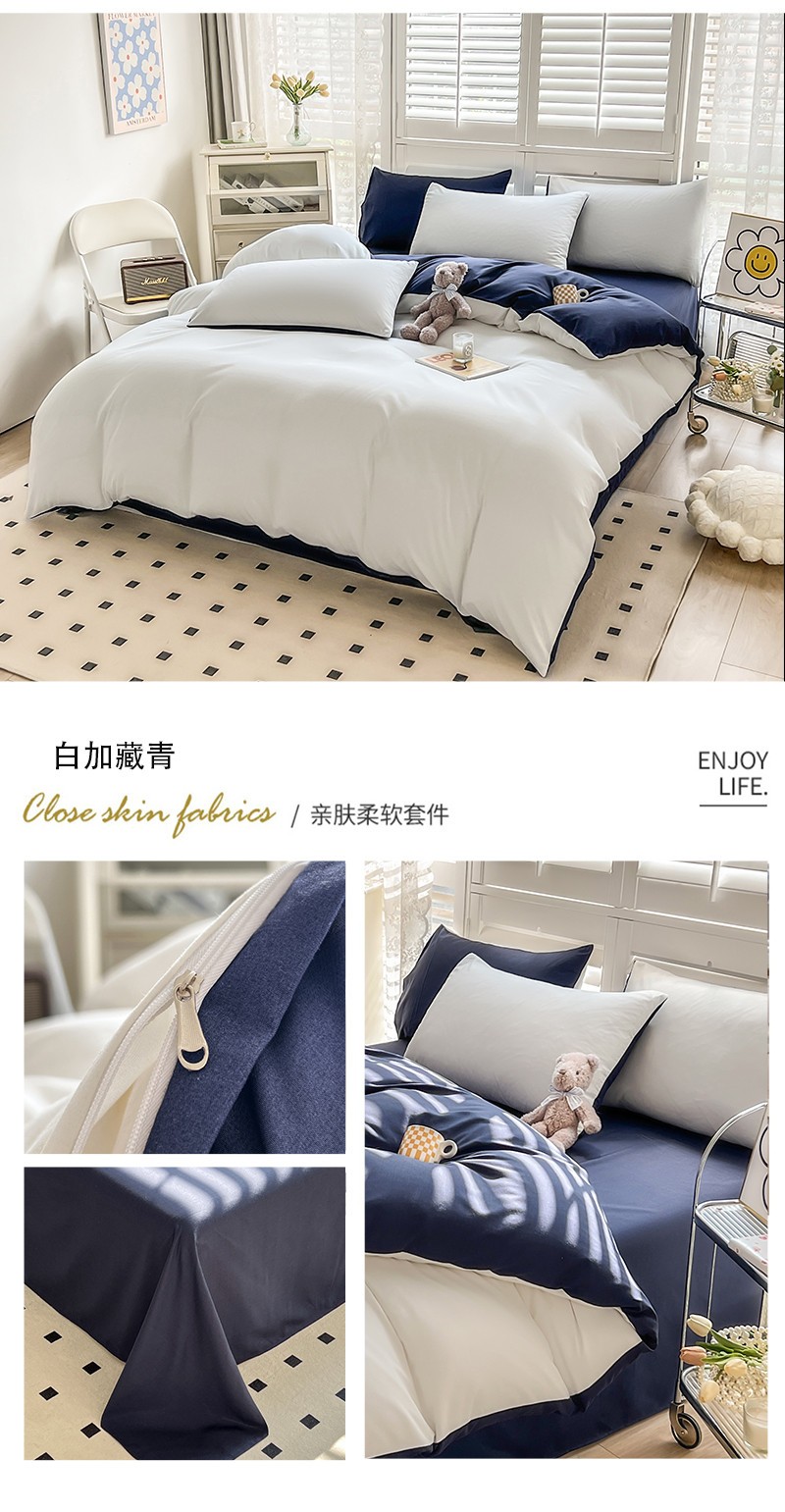 当前位置: 91家纺网 > 商品网购 > 床品套件 > 四件套 > 普通磨毛四件套 > 安力森/诚臻酒店用品 2023新款双拼磨毛被套床单枕套床笠单品三件套四件套 白加藏青