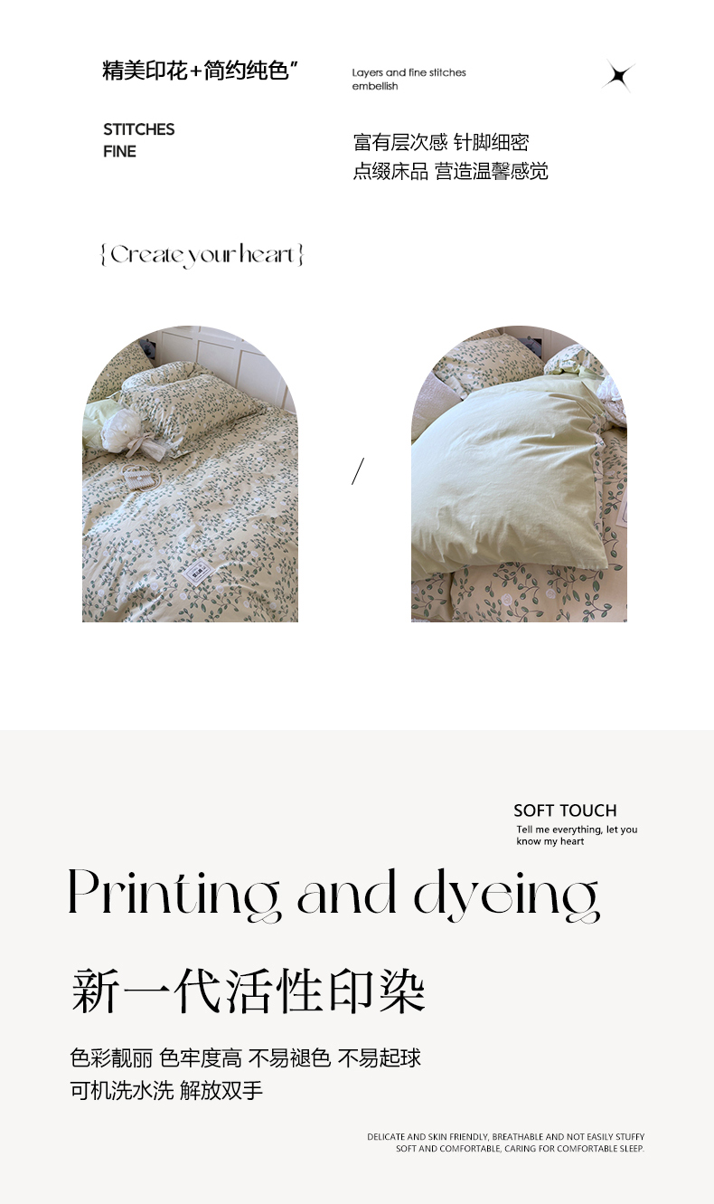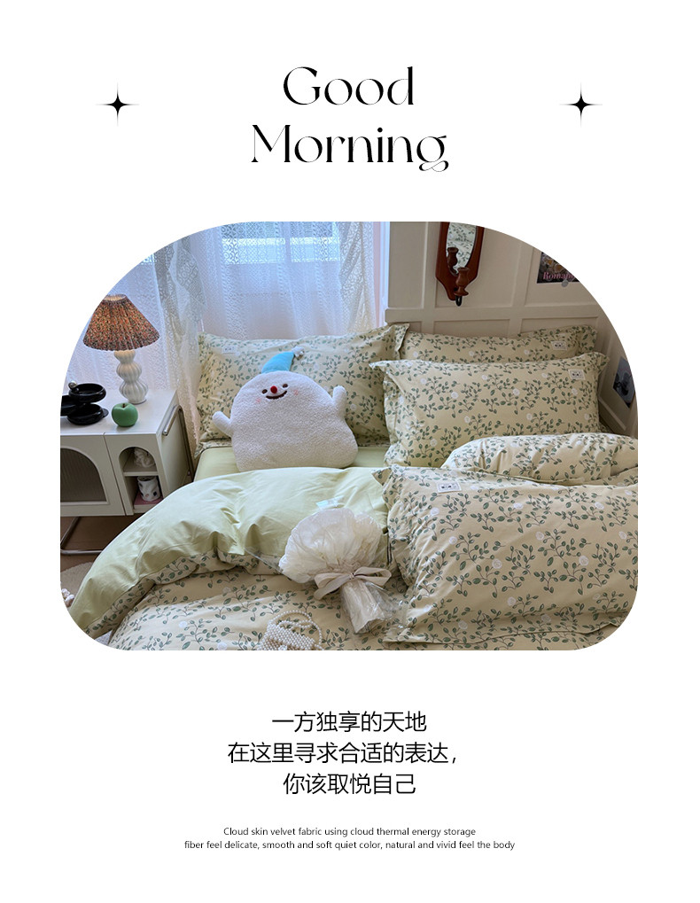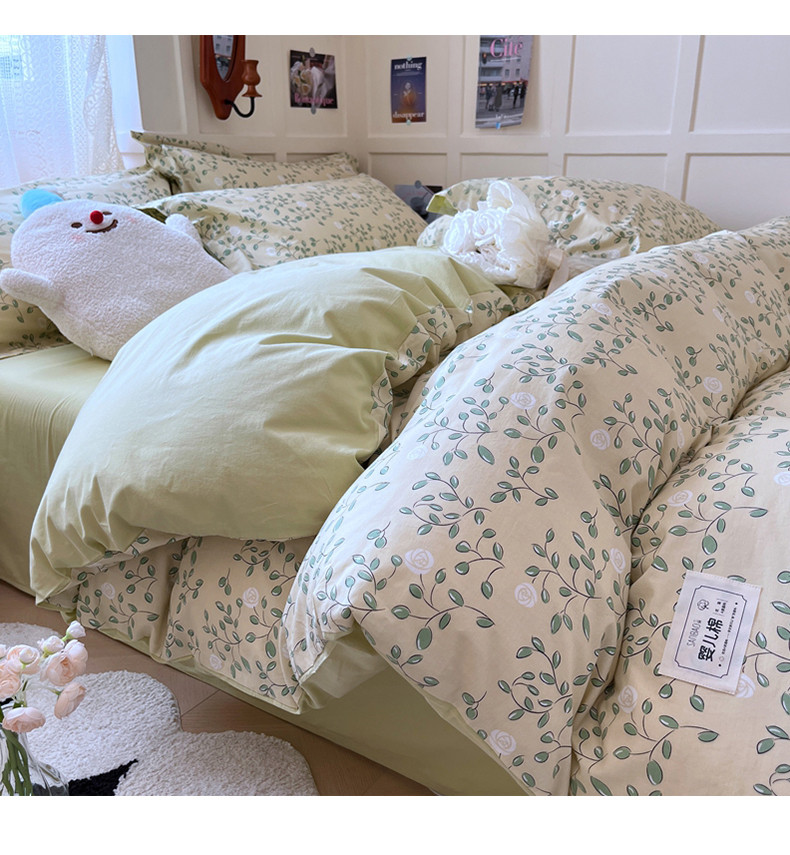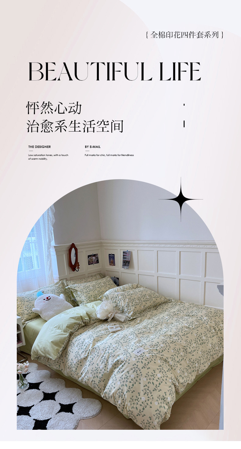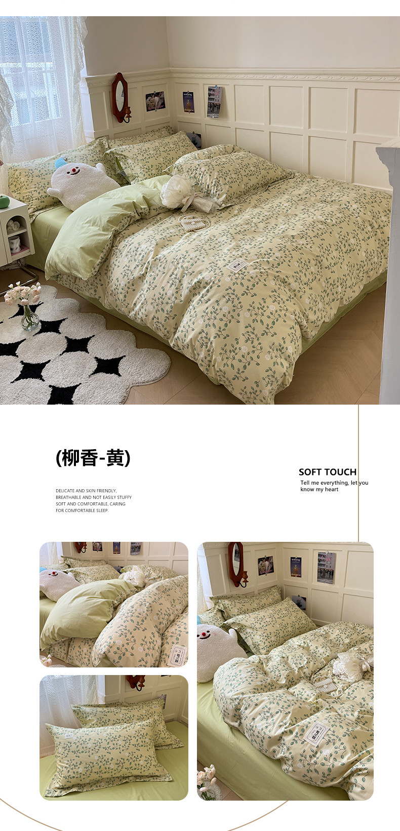 米粒家纺 2023新款全棉印花四件套系列 柳香-黄