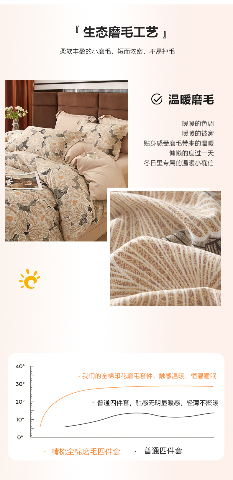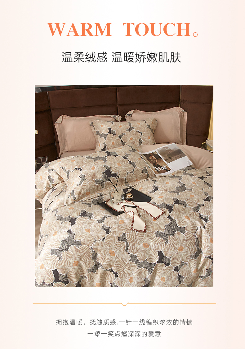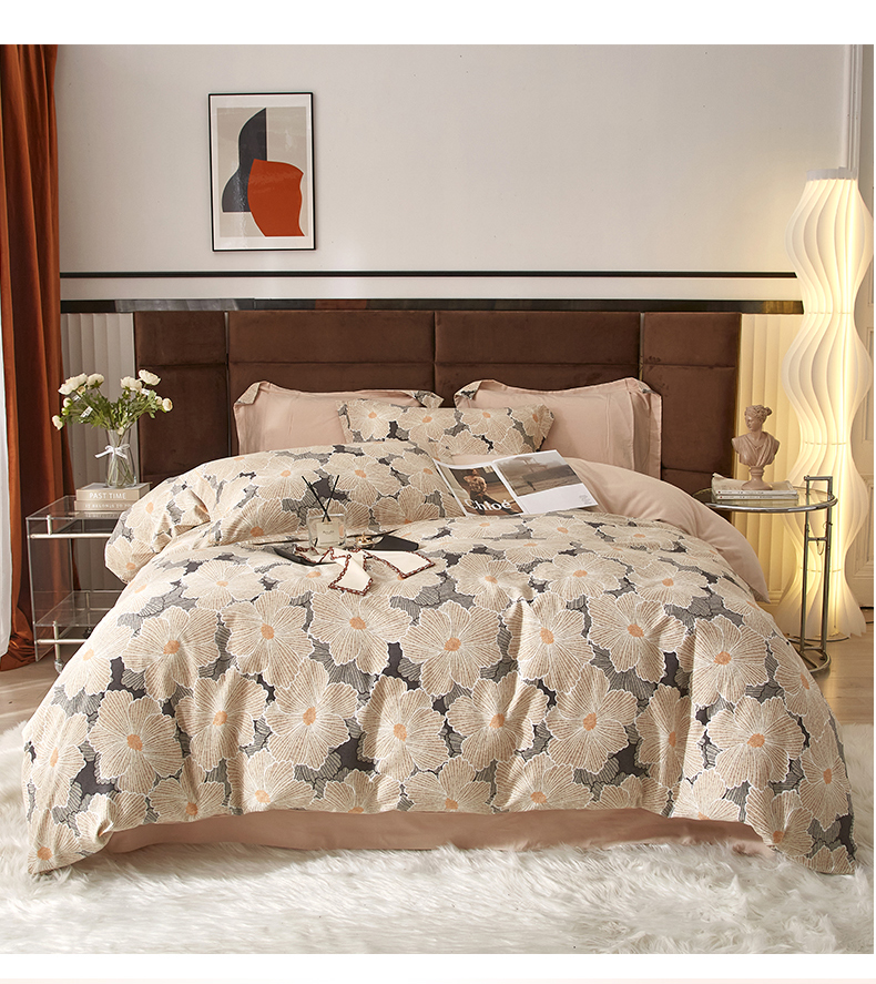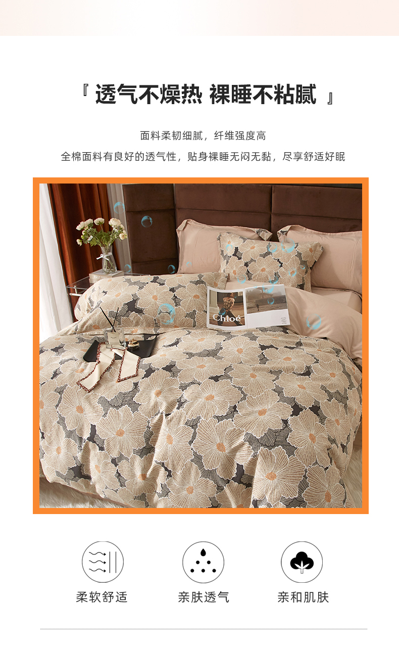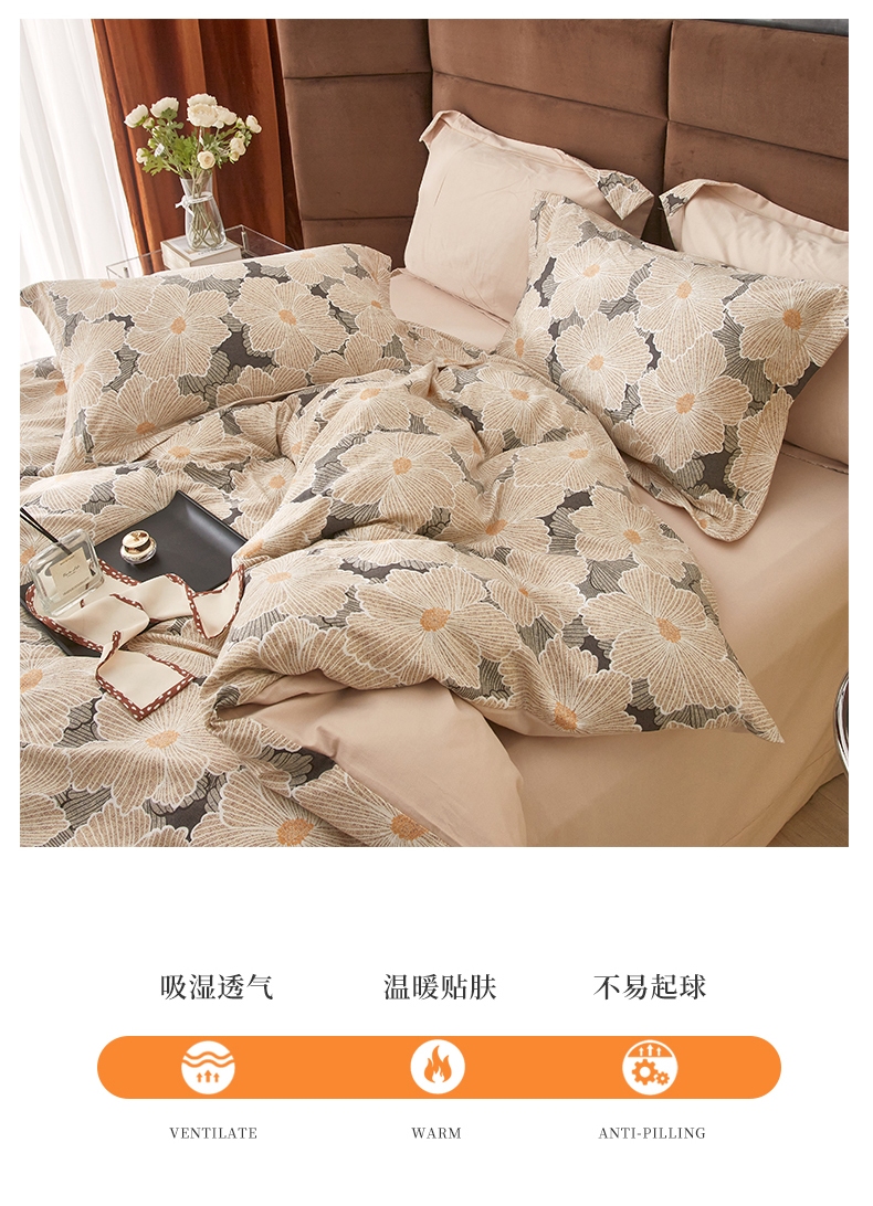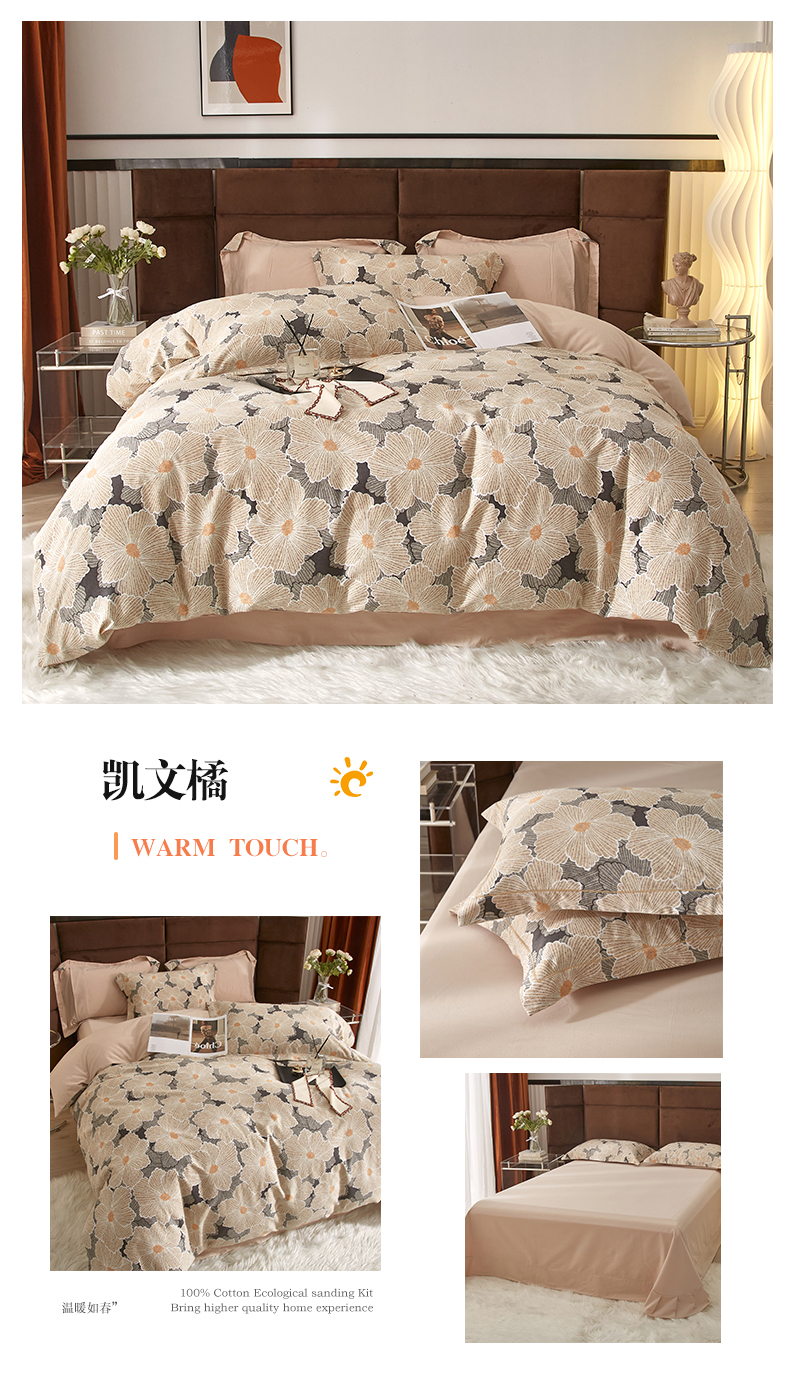 启航家居 2025直播热款全棉精梳磨毛印花四件套-小资格调系列 凯文橘
