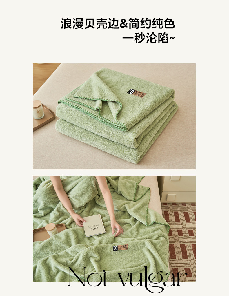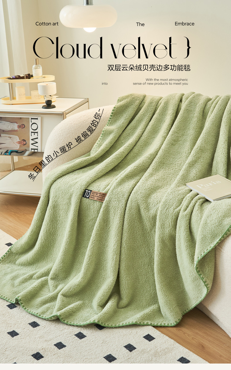 商品名称:晨曦家纺 2023新款高克重440克云朵绒双层毛毯高级贝壳边加厚毯子 云朵绒-柠檬绿