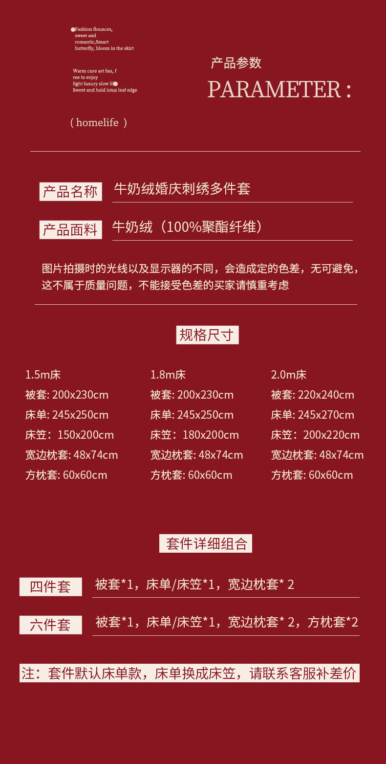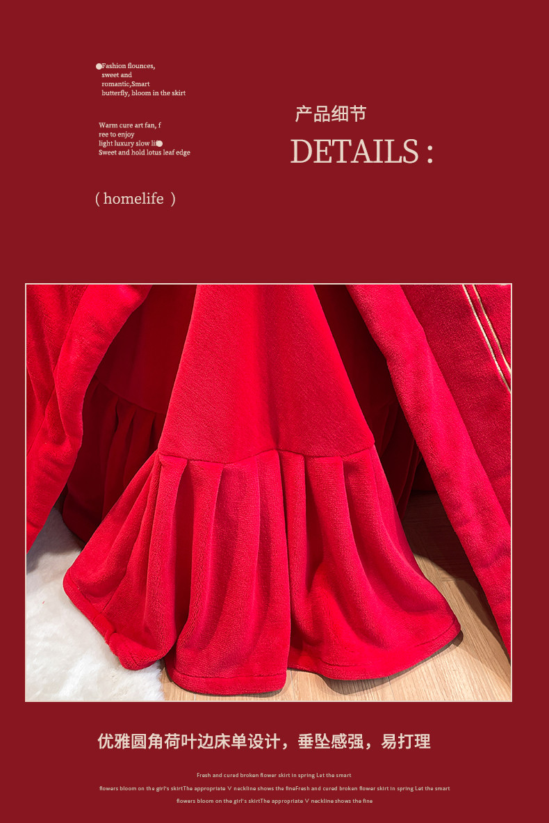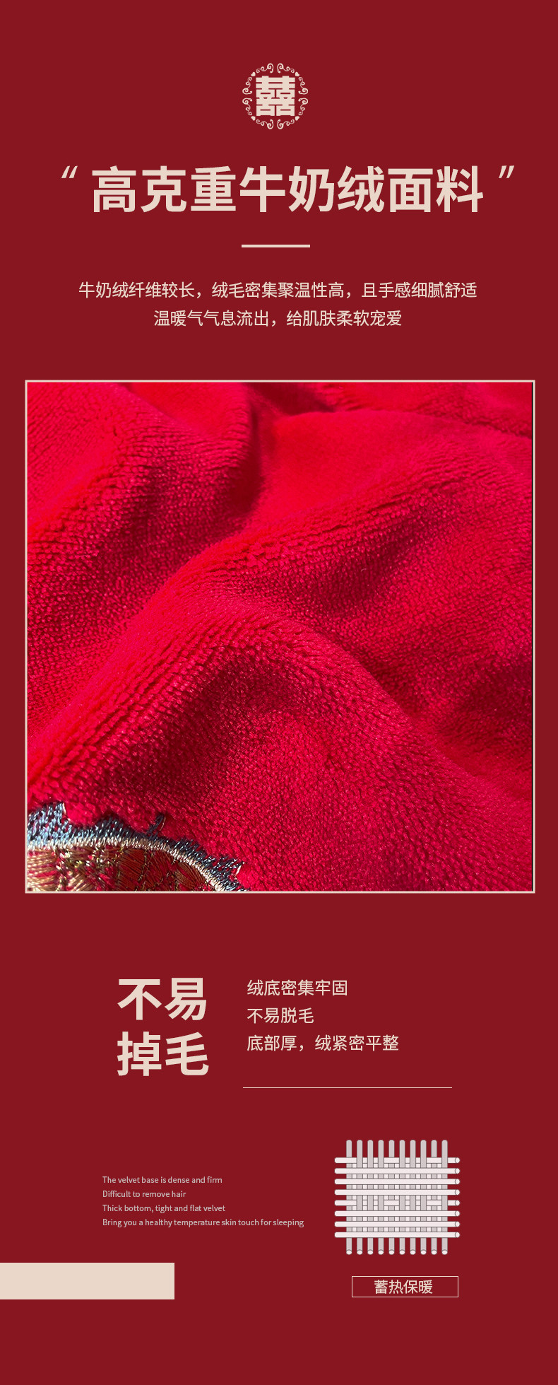 商品名称:(总)2025新款高克重牛奶绒刺绣婚庆四件套大红套件