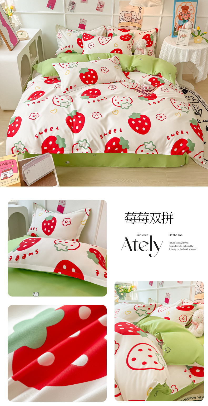 商品名称:花伞家居 2024直播网销斜纹加厚磨毛印花植物羊绒四件套 莓莓双拼