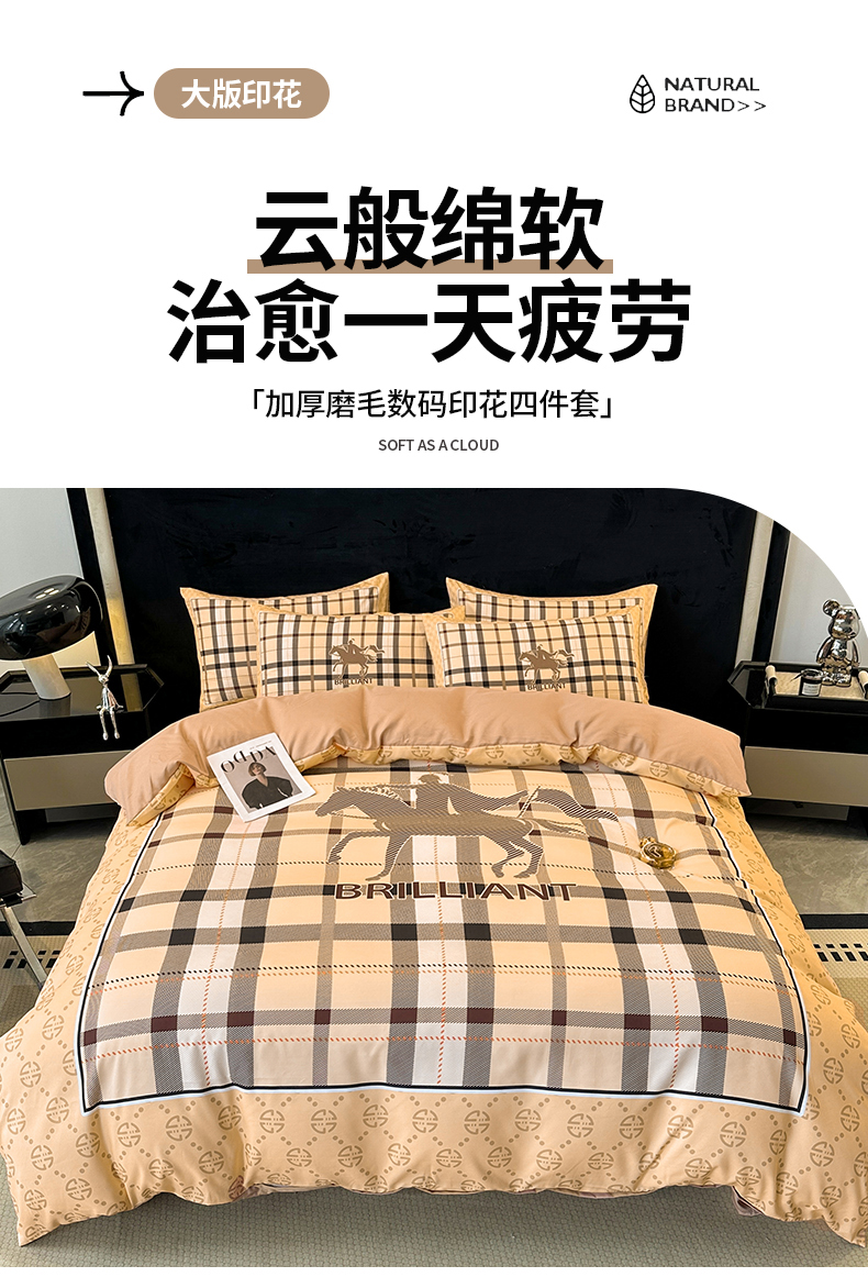 当前位置: 91家纺网 > 商品网购 > 床品套件 > 四件套 > 普通磨毛四件套 > 色鬼布艺 2023新款加厚双面磨毛数码大版印花四件套 格言