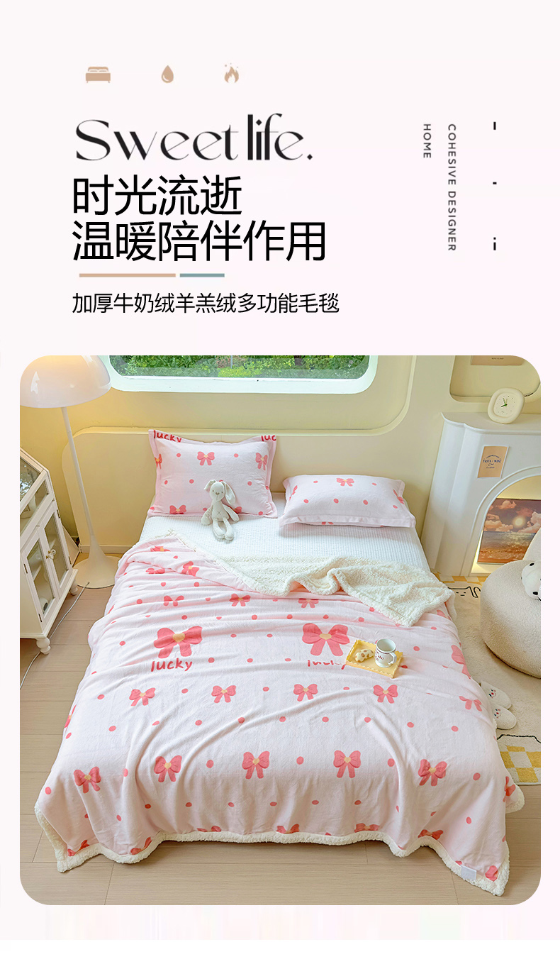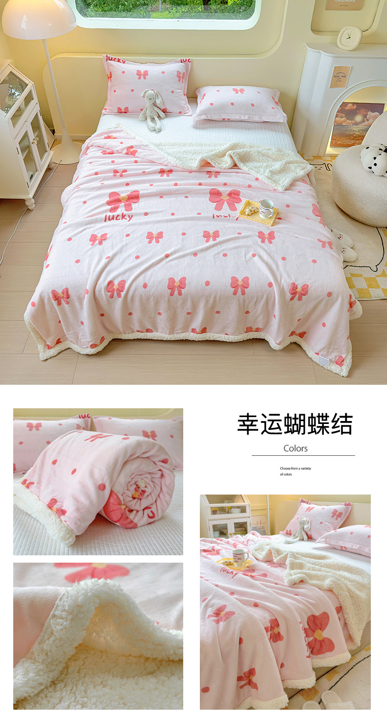 商品名称:沐慕 2023新款毛毯 幸运蝴蝶结