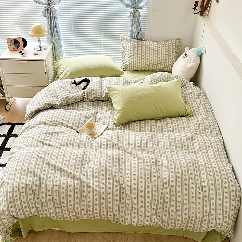 (总)昔可 2023新款全棉ins格子混搭系列四件套,ins简约绿格,粉蓝格,开心果格,学院格纹,粉绿格,海盐兰格,黄绿格,夏日蓝条,芝士黄条,紫芋泥芝士格