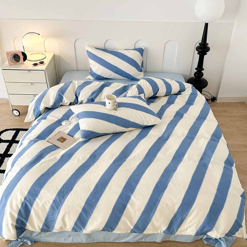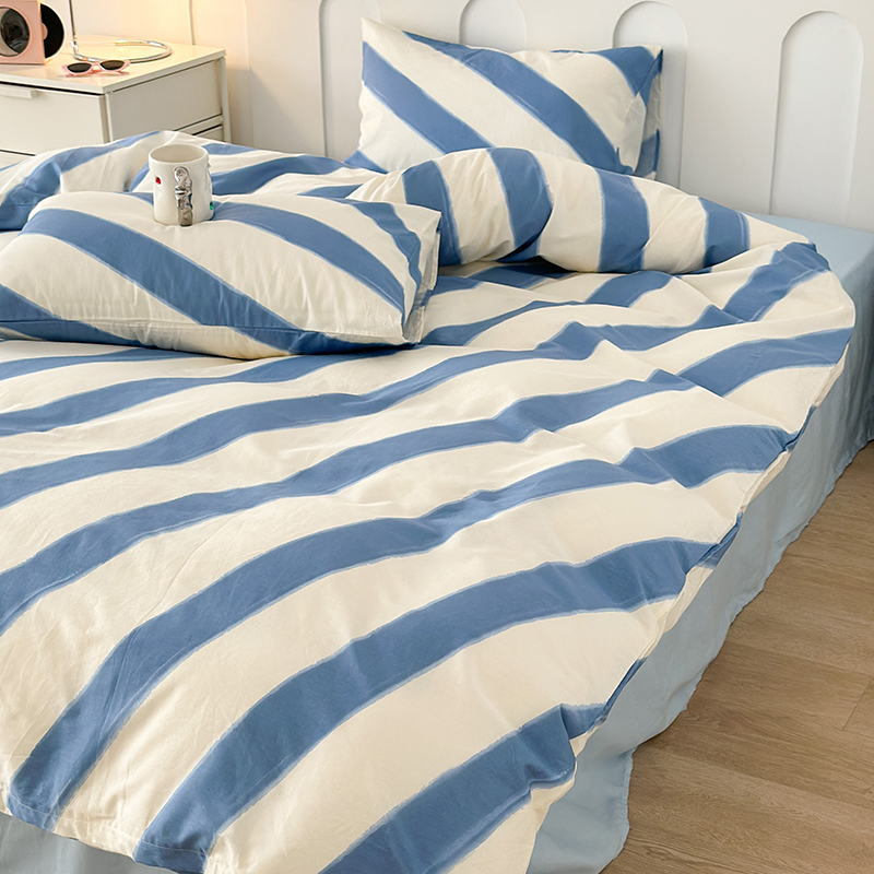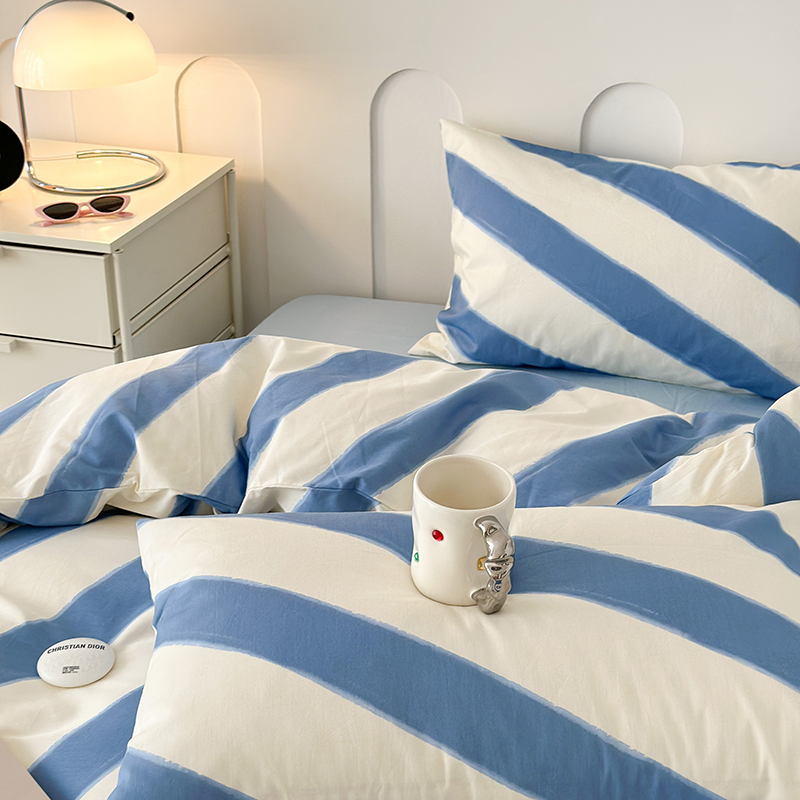 商品名称:昔可家纺 2023新款多巴胺少女风条纹全棉四件套 海盐蓝条