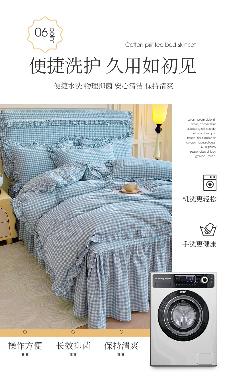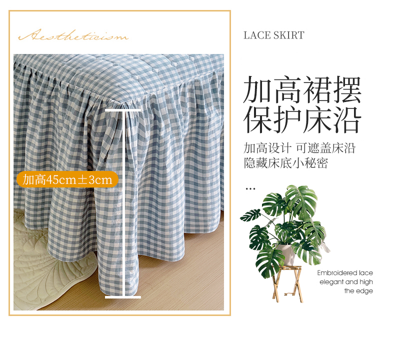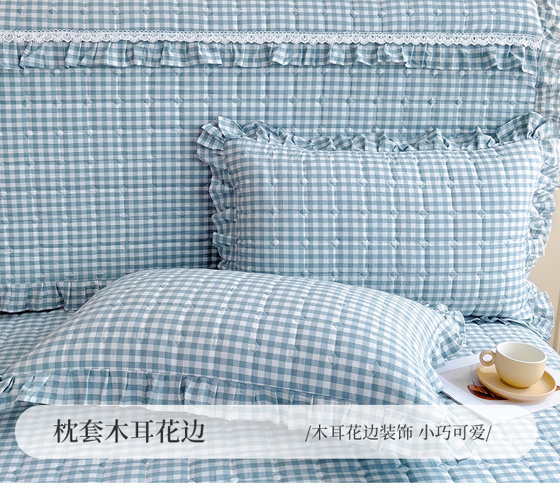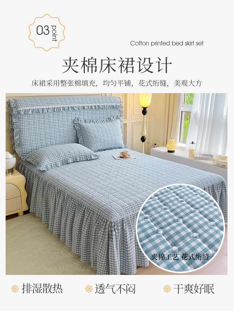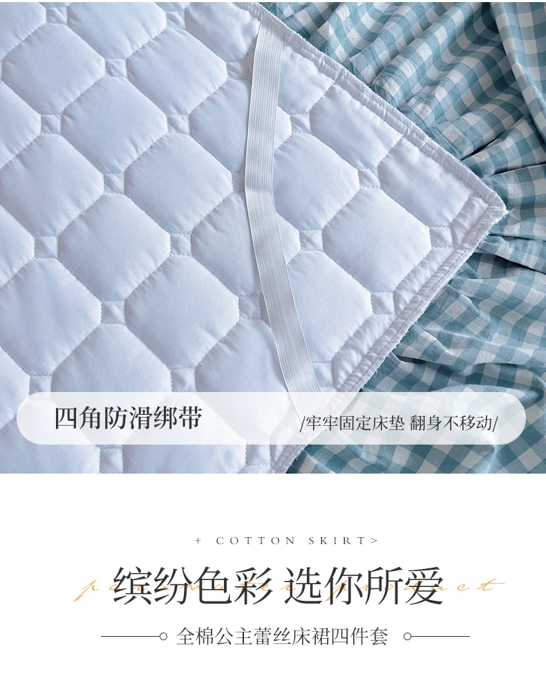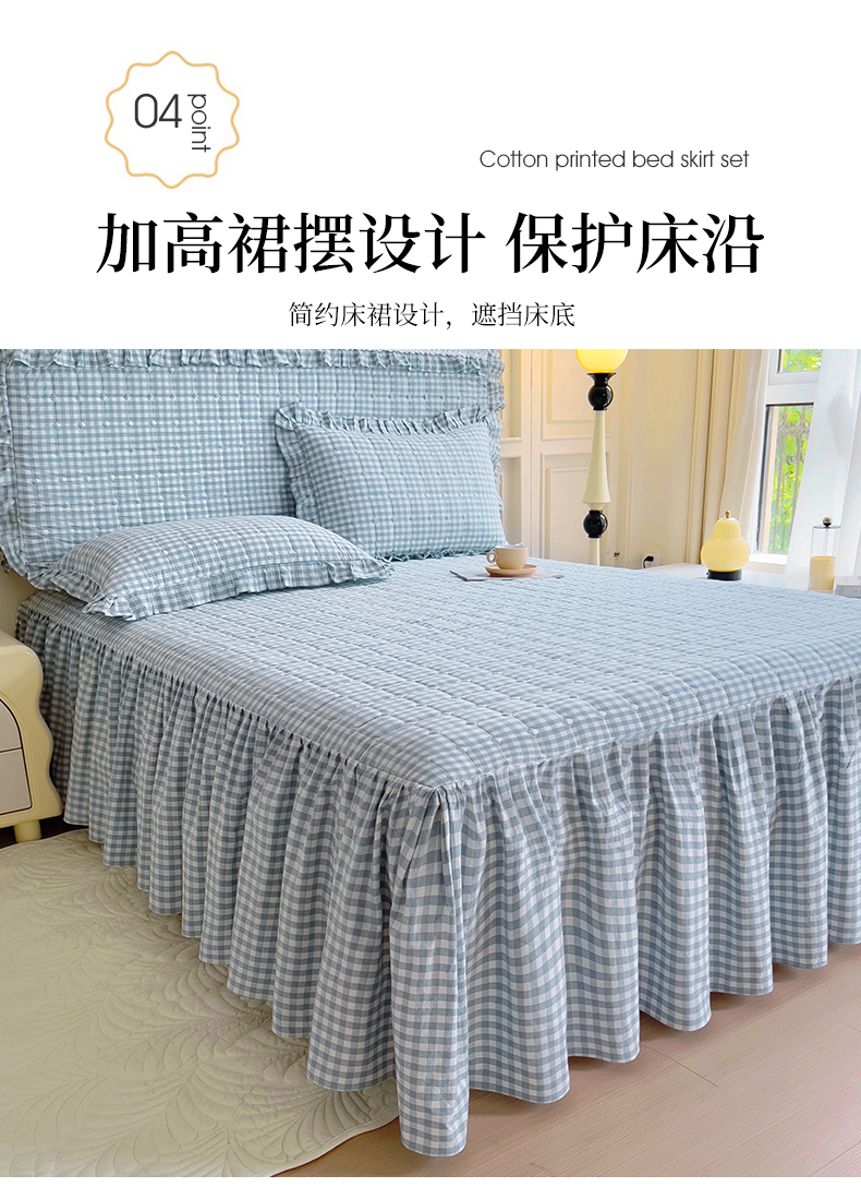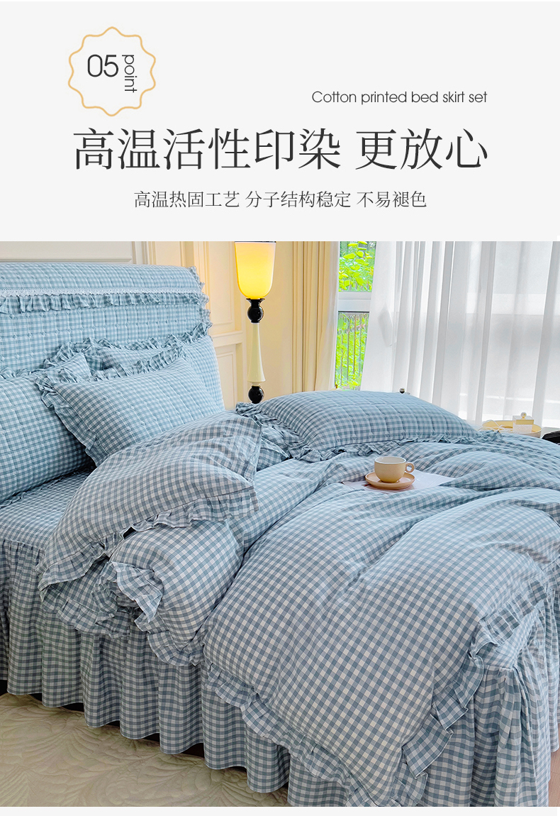 当前位置: 91家纺网 > 商品网购 > 床品套件 > 四件套 > 水洗棉四件套 > 十个点 2024新款色织水洗棉韵格系列床裙款四件套 浅蓝小格