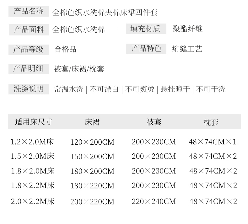 2.0米全加大四件套 (被套2.2*2.4) | ¥235.00 |