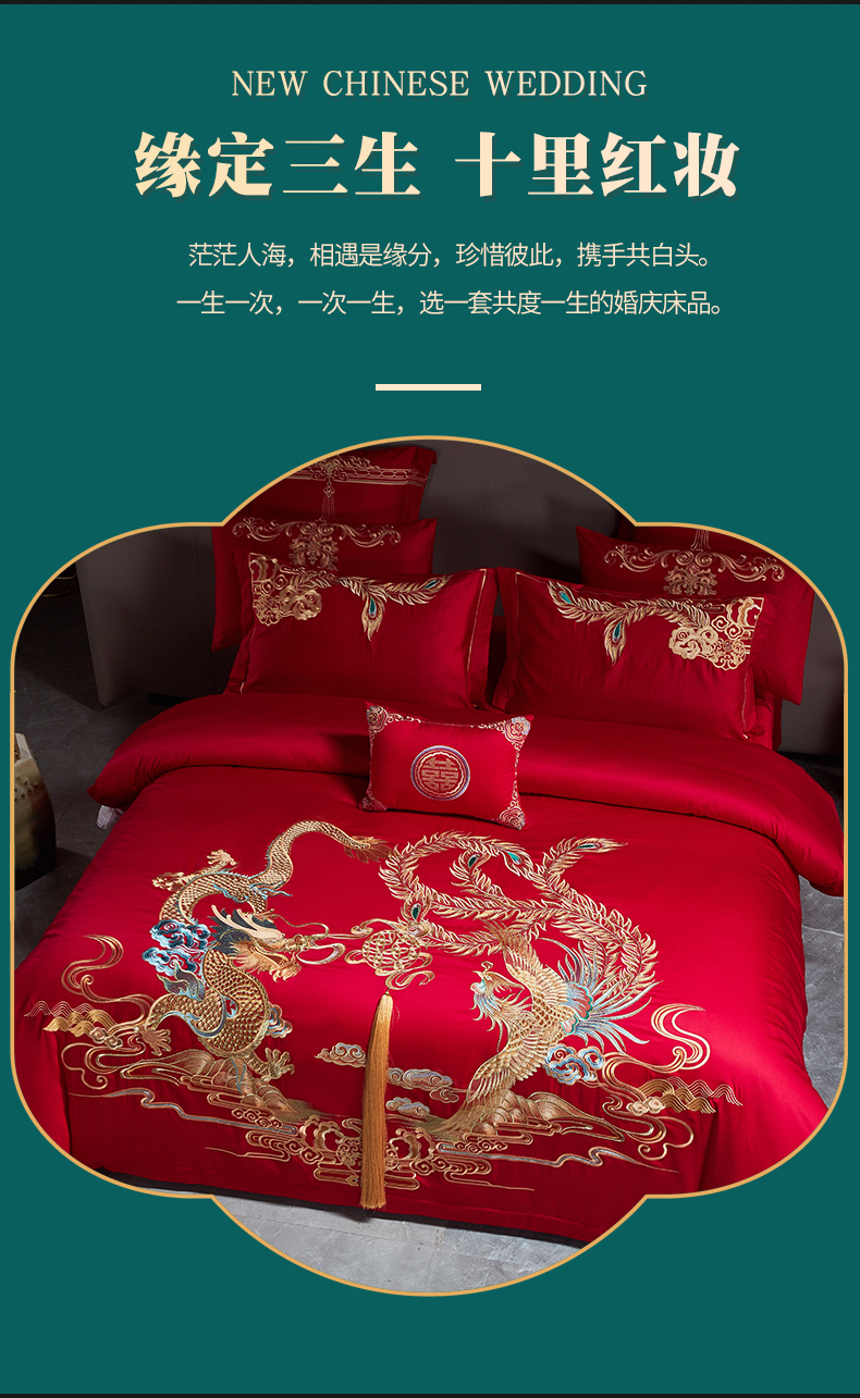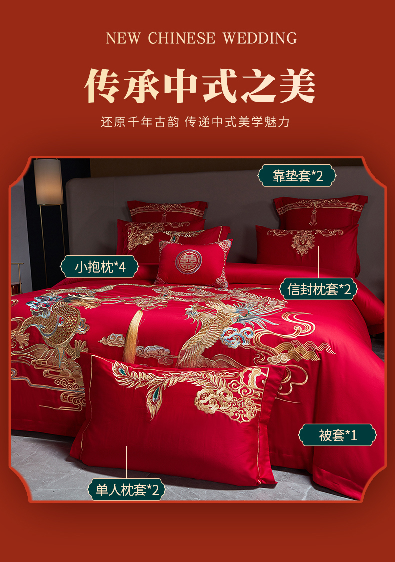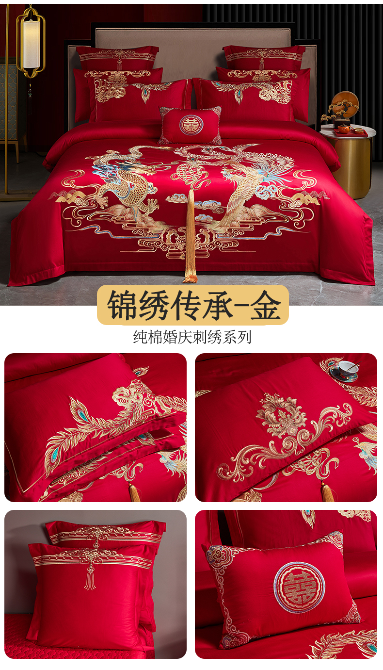 当前位置: 91家纺网 > 商品网购 > 床品套件 > 多件套 > 多件套 > 宏羽纺 2024新款纯棉新中式刺绣婚庆多件套锦绣传承-金