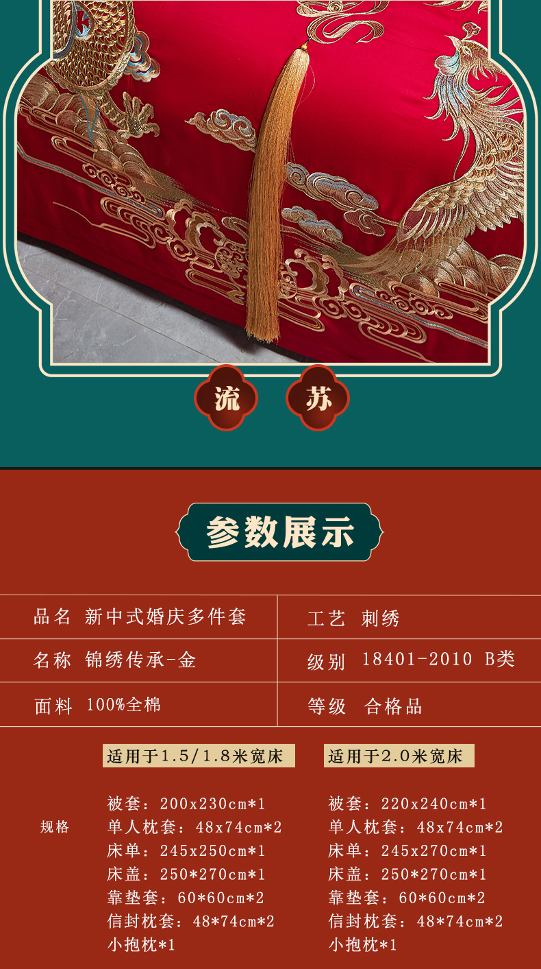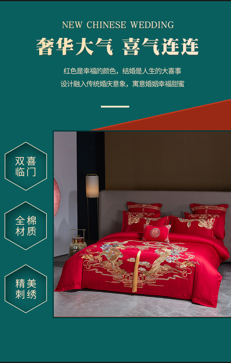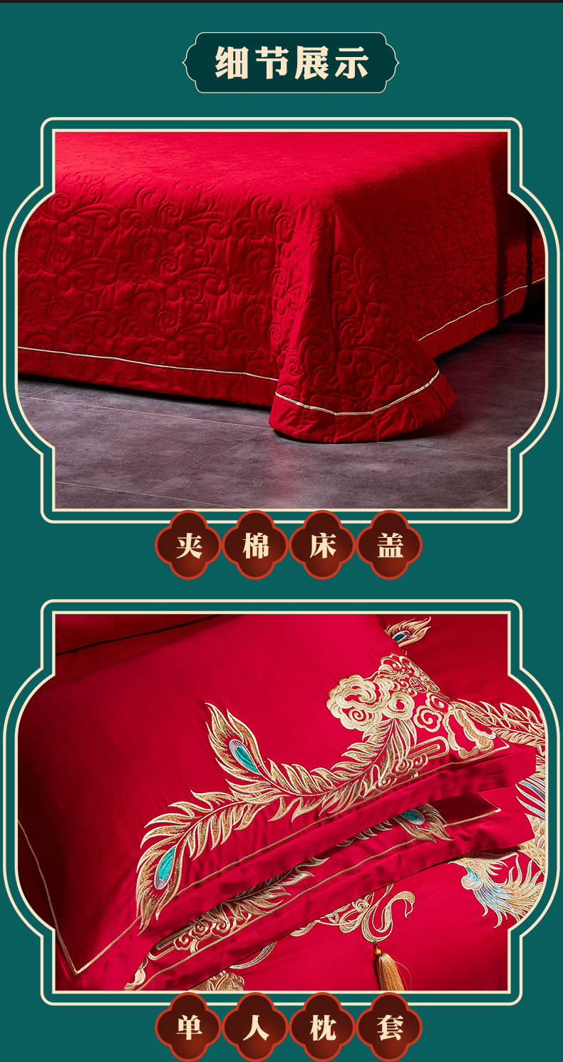 当前位置: 91家纺网 > 商品网购 > 床品套件 > 多件套 > 多件套 > 宏羽纺 2024新款纯棉新中式刺绣婚庆多件套锦绣传承-金