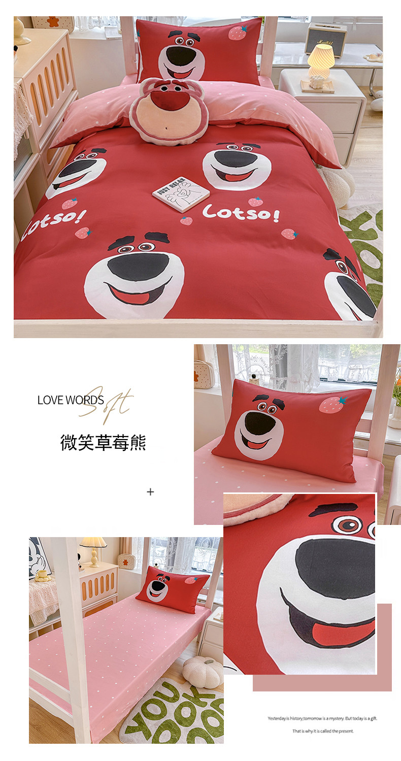商品名称:卡斯诺 2023新款迪士尼斜纹磨毛宿舍床三件套 微笑草莓熊