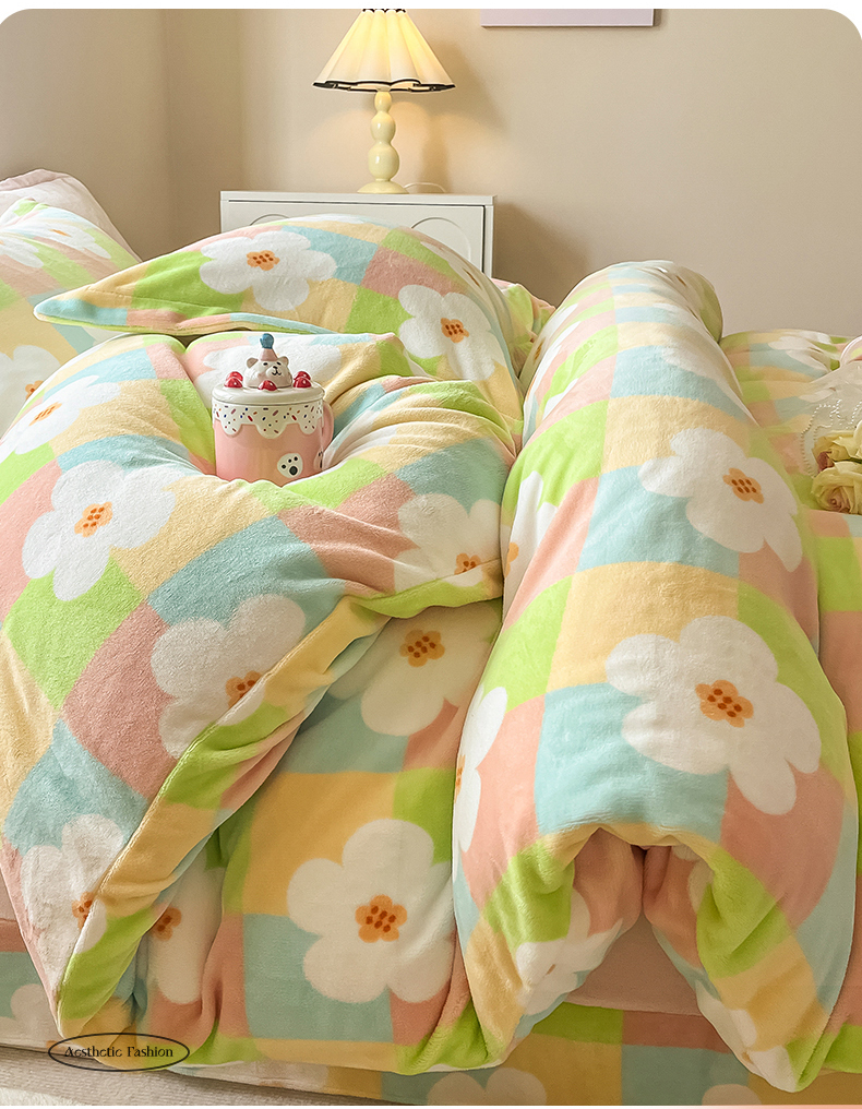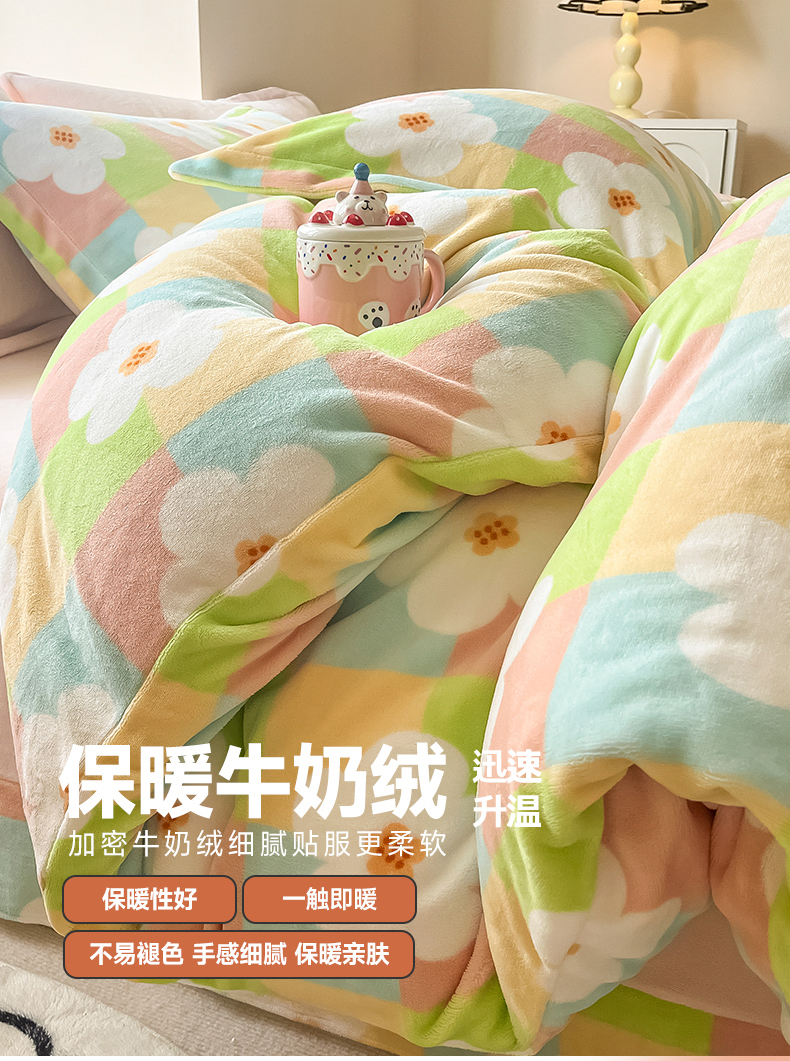 (总)呗旺鹿 2025新款卡通棉+绒牛奶绒棉绒四件套,心意满满,快乐魔法,闹钟麦田