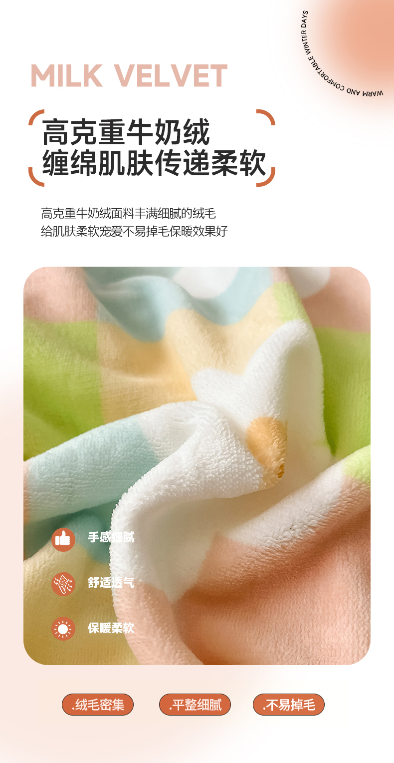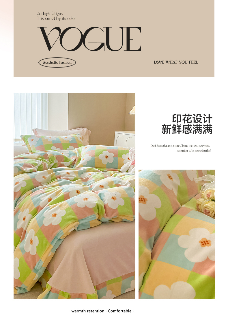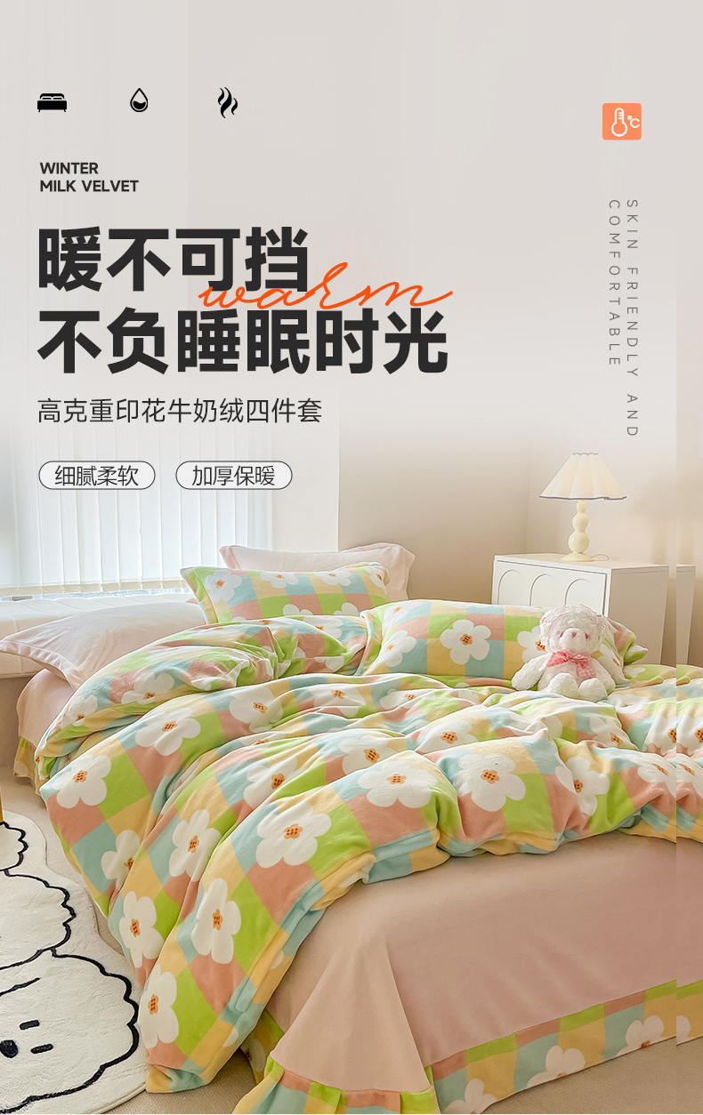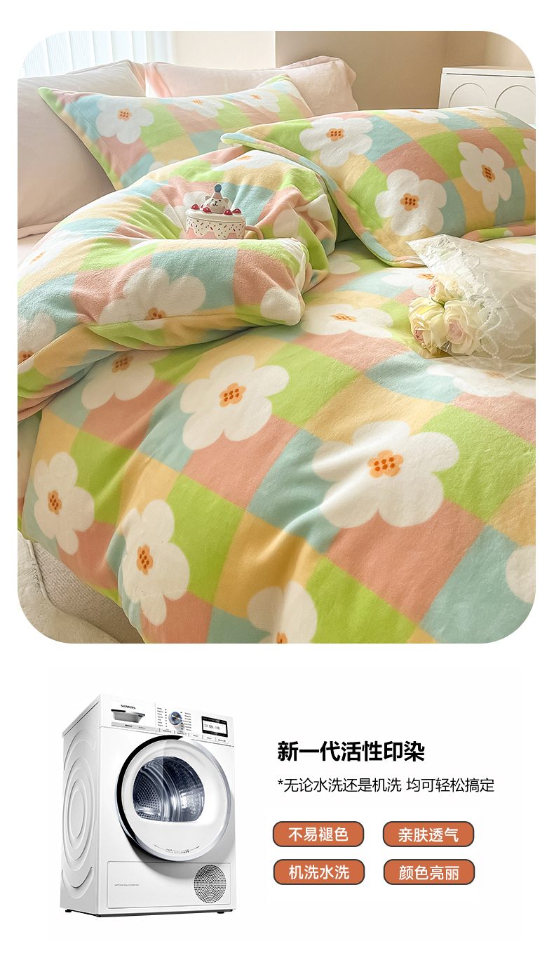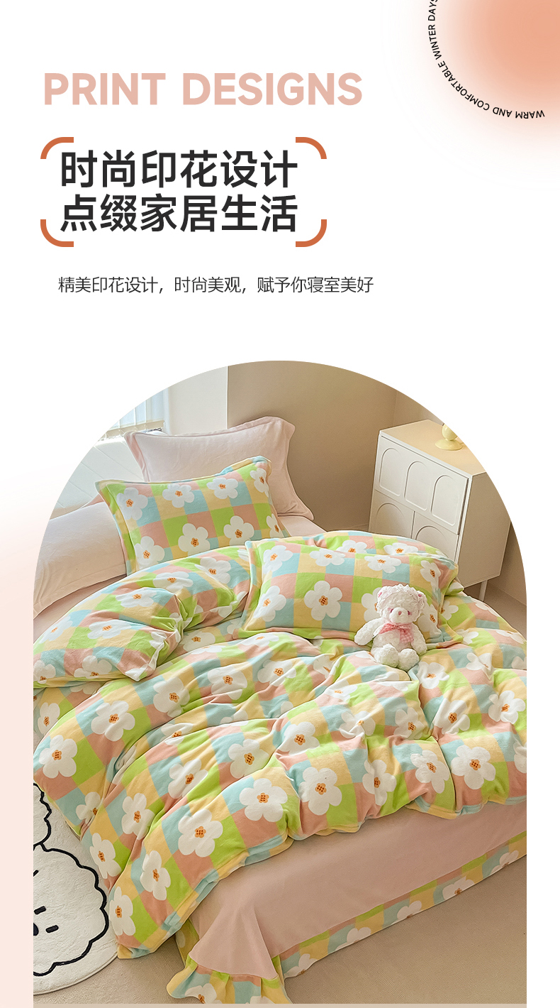 呗旺鹿 2023新款高克重印花牛奶绒四件套直播 花漾