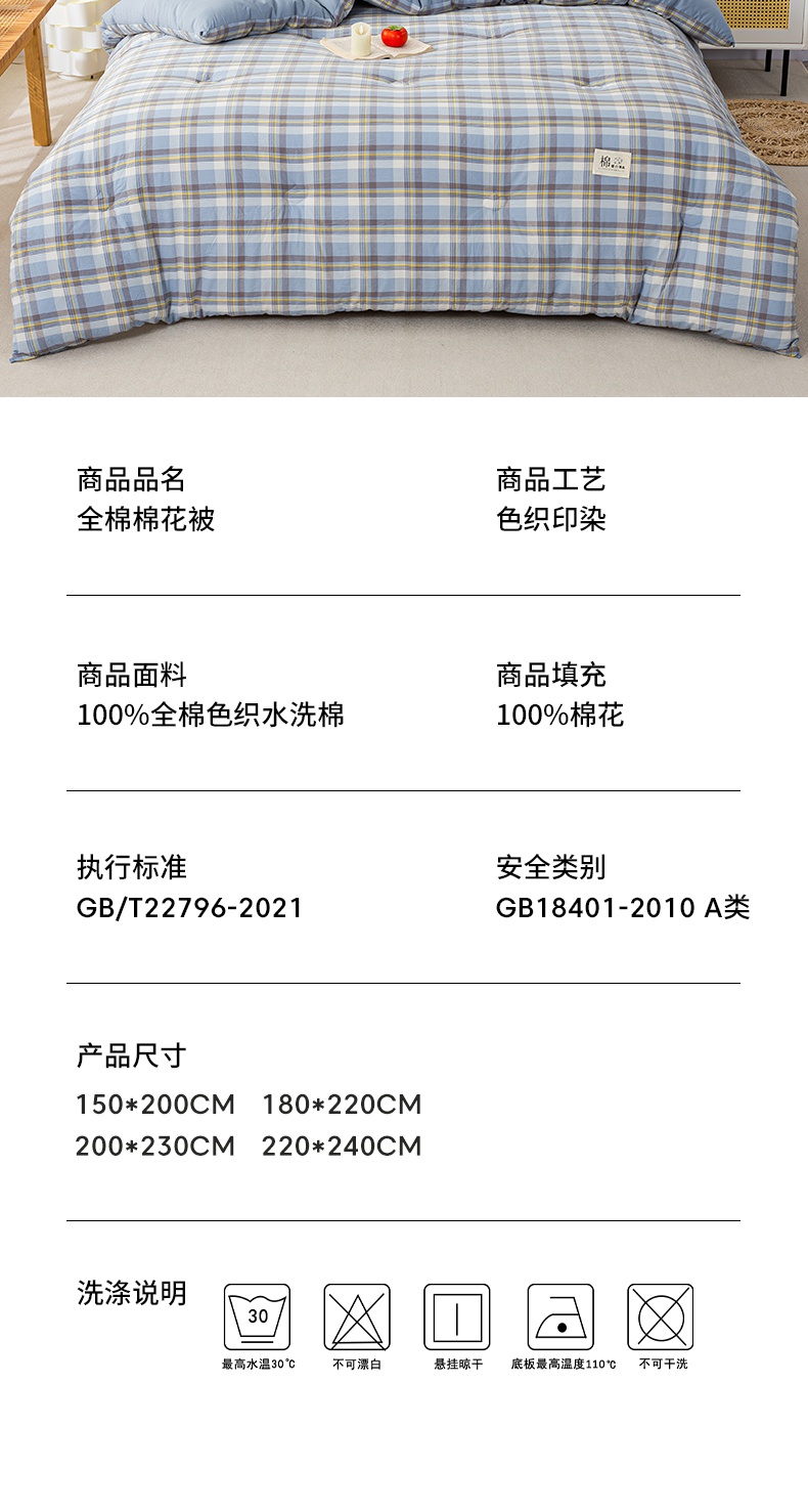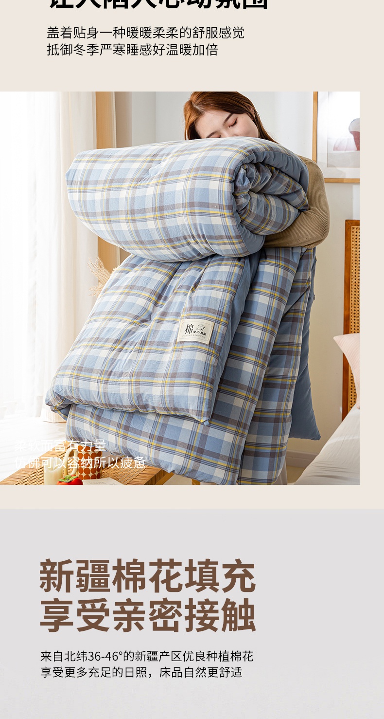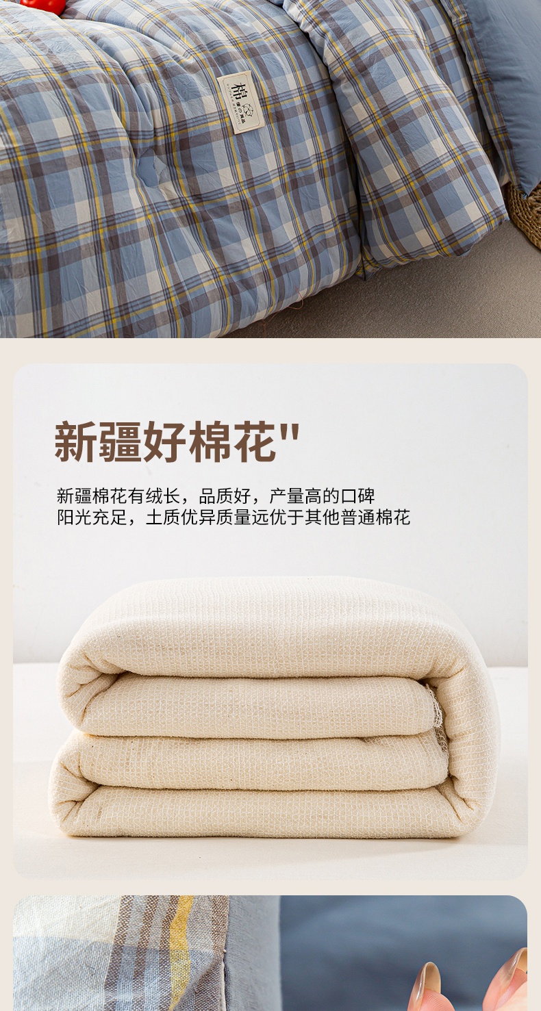 鸣升家纺 新款无印风全棉色织水洗棉100%棉花被冬被被子被芯 莫妮卡兰