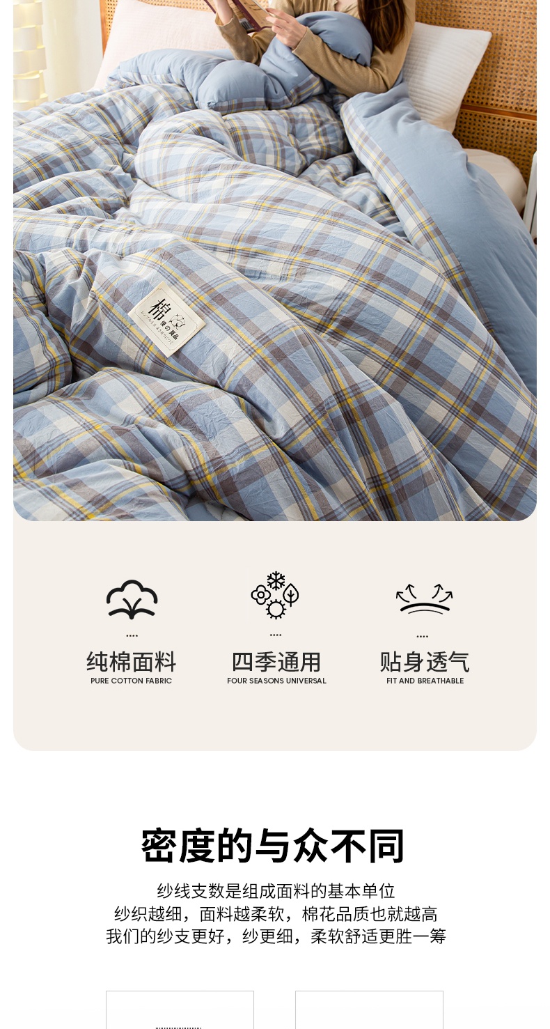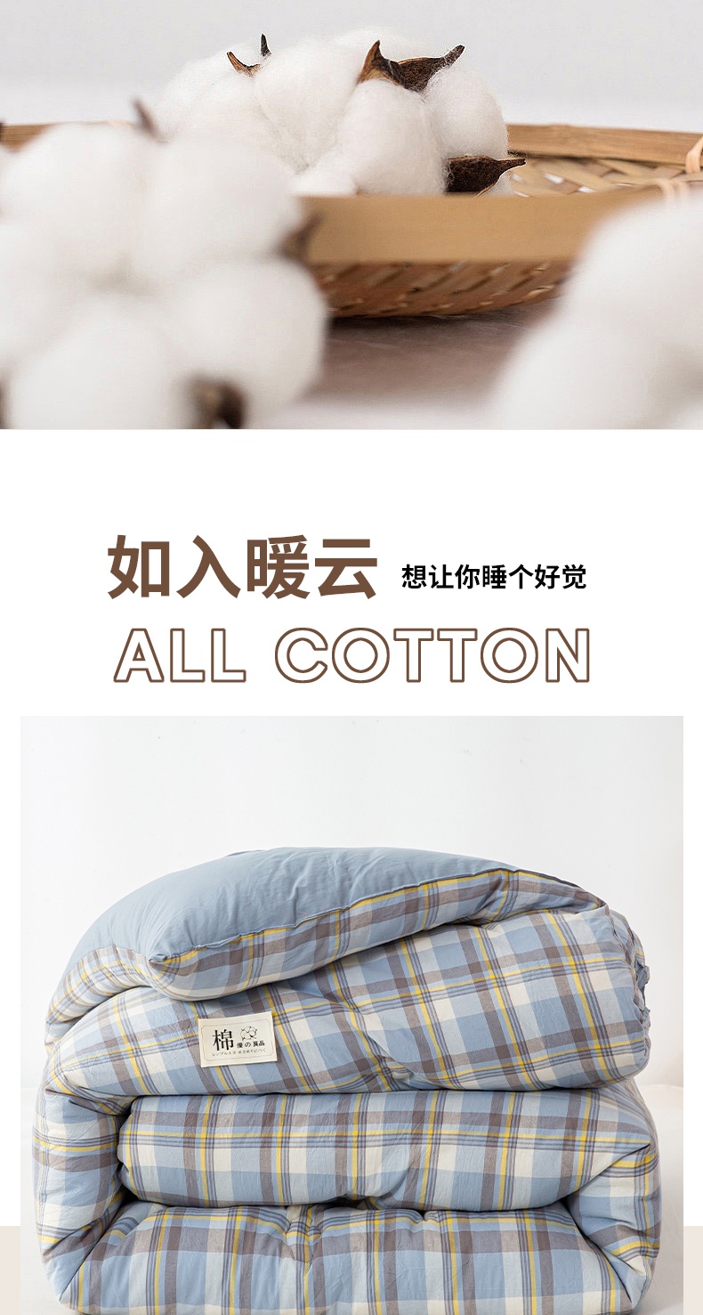 • 91家纺网 家纺一手货源 找家纺 鸣升家纺 新款无印风全棉色织水洗棉100%棉花被冬被被子被芯 莫妮卡兰