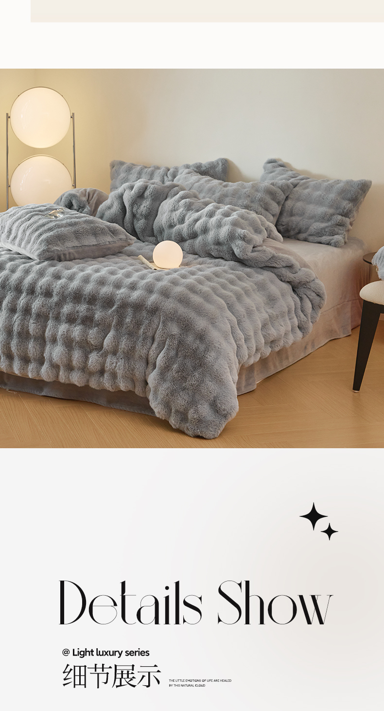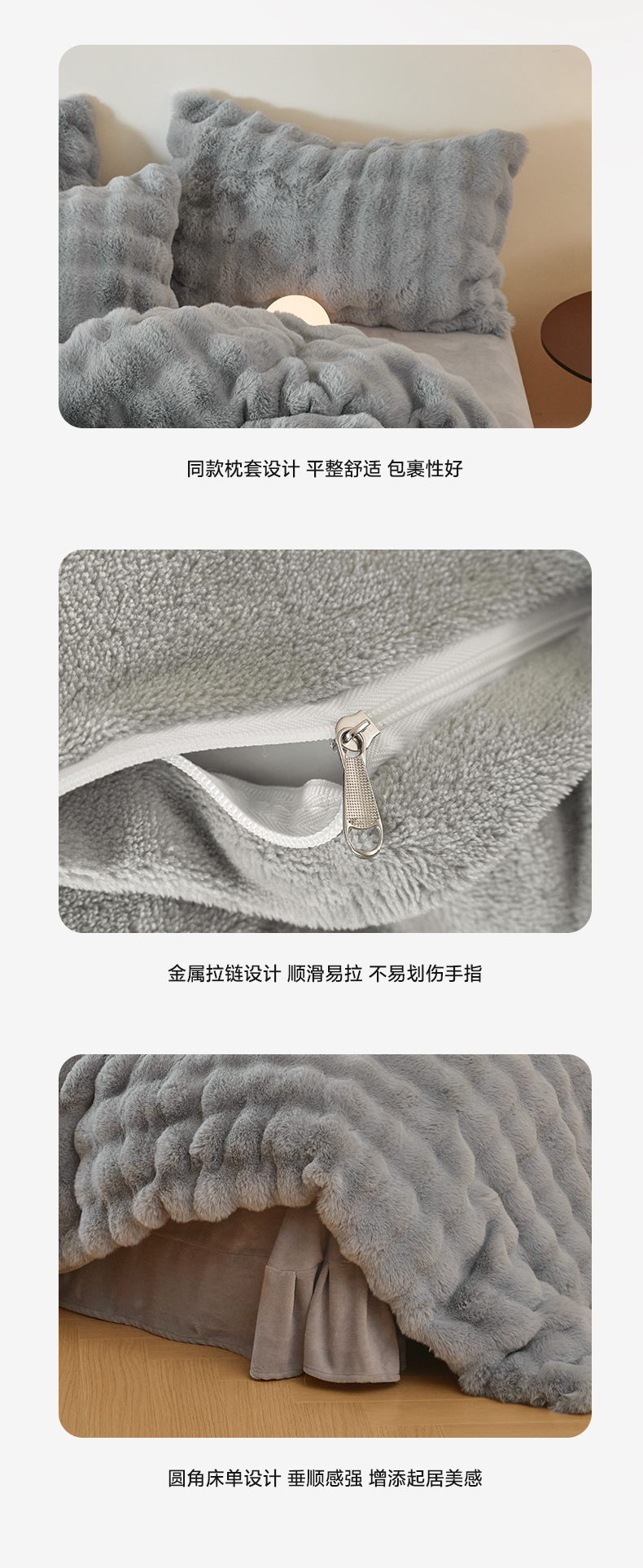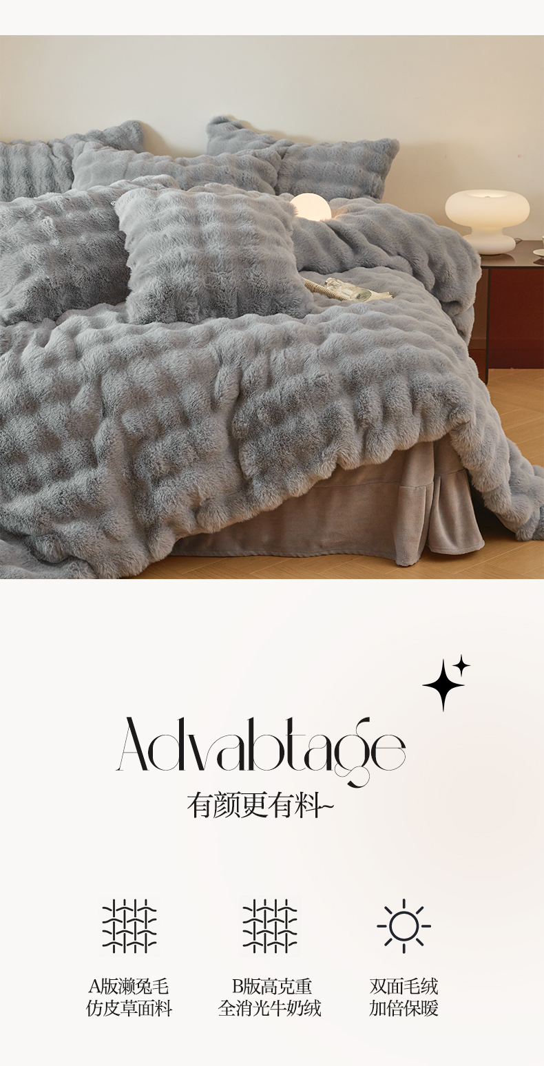 商品名称:铠畅2023款高端A类580克獭兔毛11-12斤皮草双面加厚牛奶绒兔兔绒大泡泡系列四件套 大泡泡烟灰