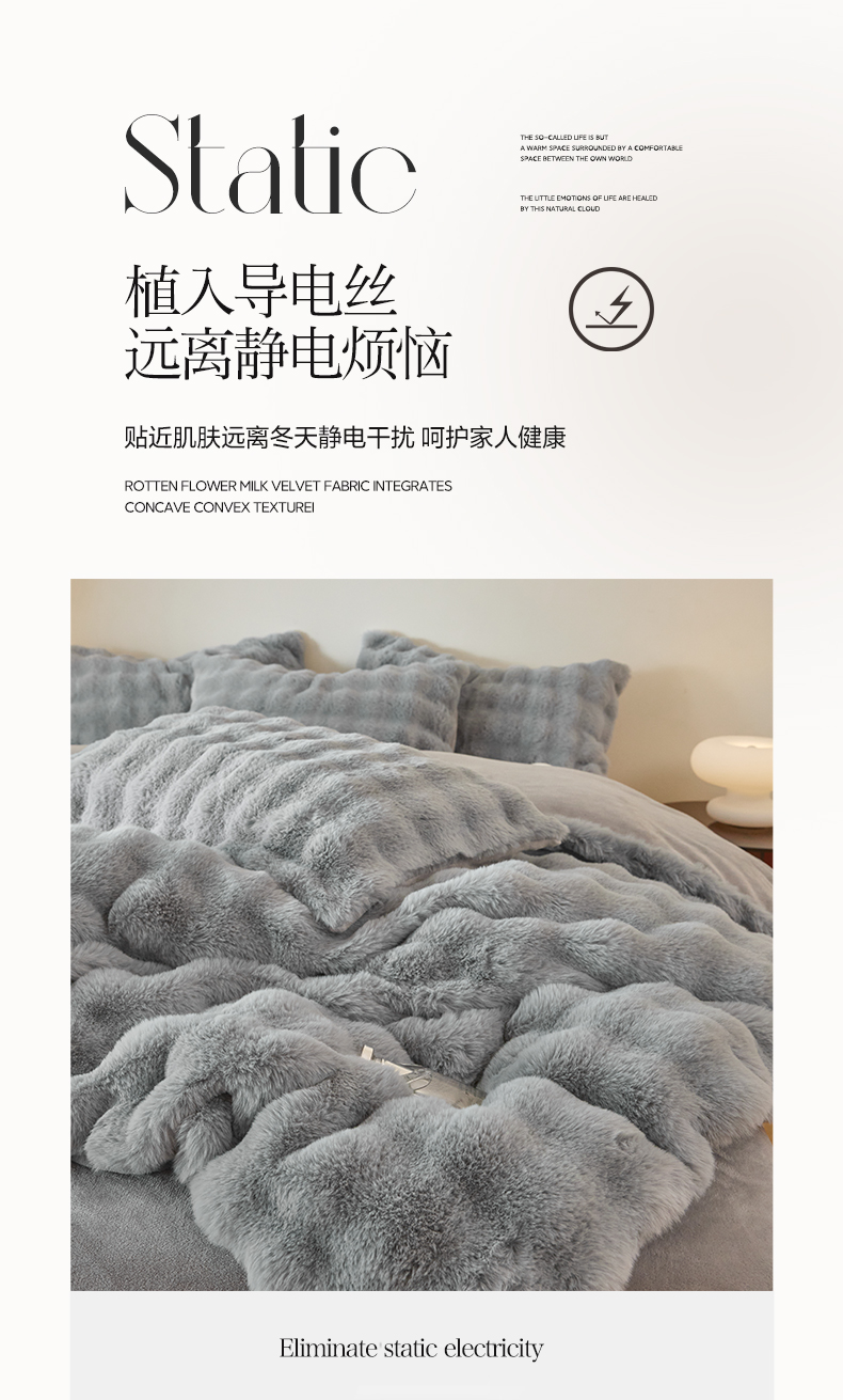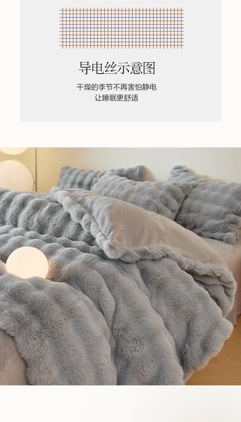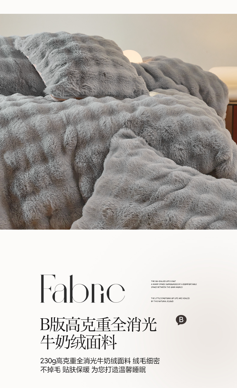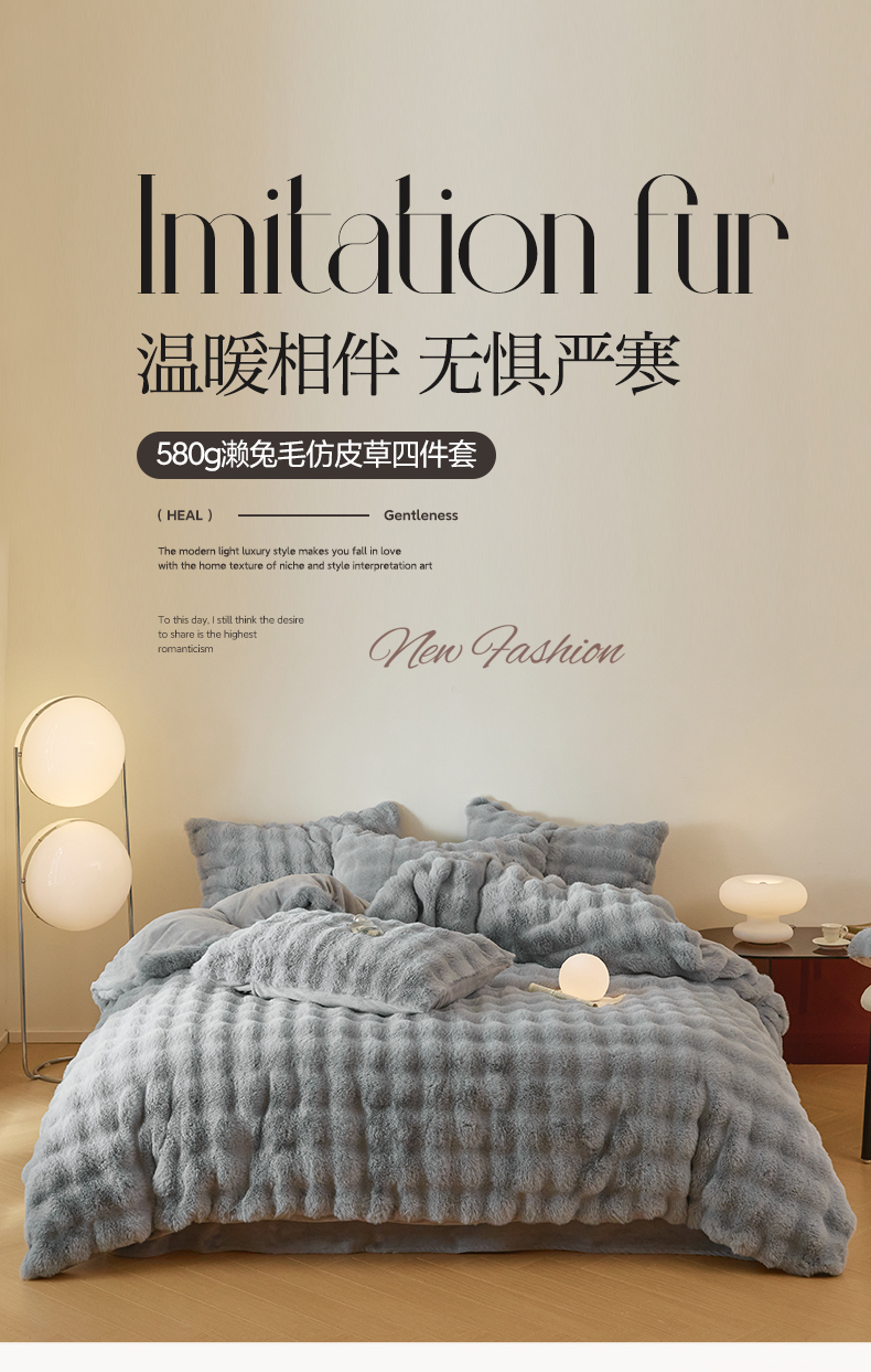 商品名称:铠畅2023款高端A类580克獭兔毛11-12斤皮草双面加厚牛奶绒兔兔绒大泡泡系列四件套 大泡泡烟灰