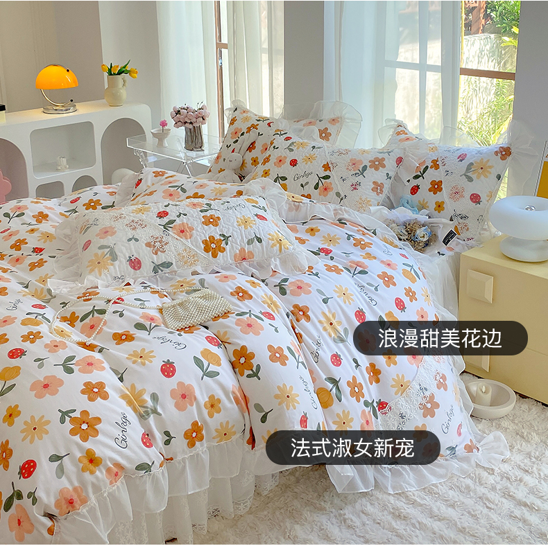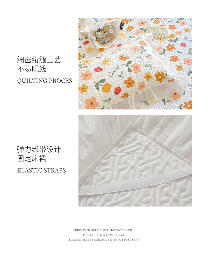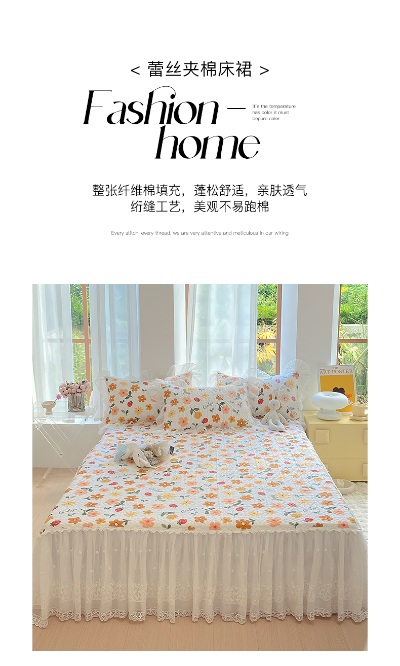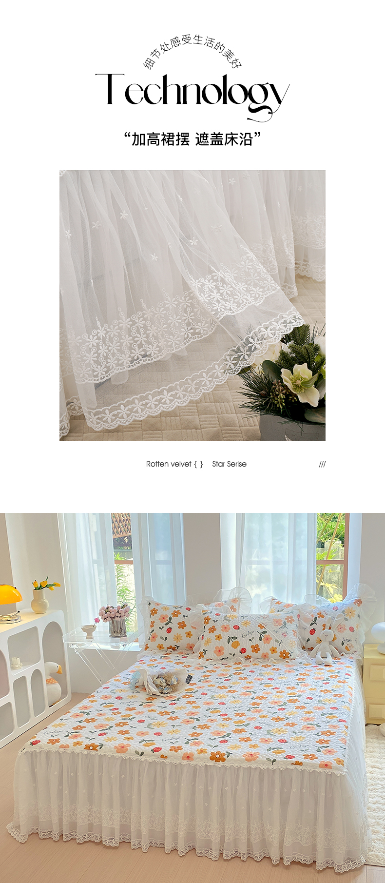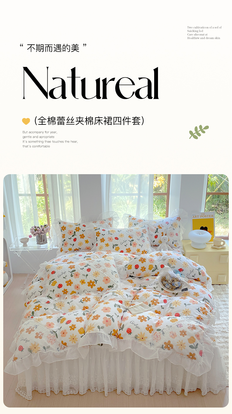 当前位置: 91家纺网 > 商品网购 > 床品套件 > 四件套 > 全棉普通四件套 > 罗艺轩家纺2024新款全棉蕾丝夹棉床裙忆江南系列-四件套 忆江南~春意