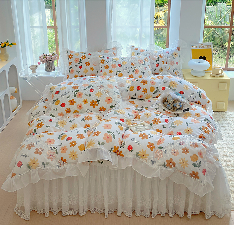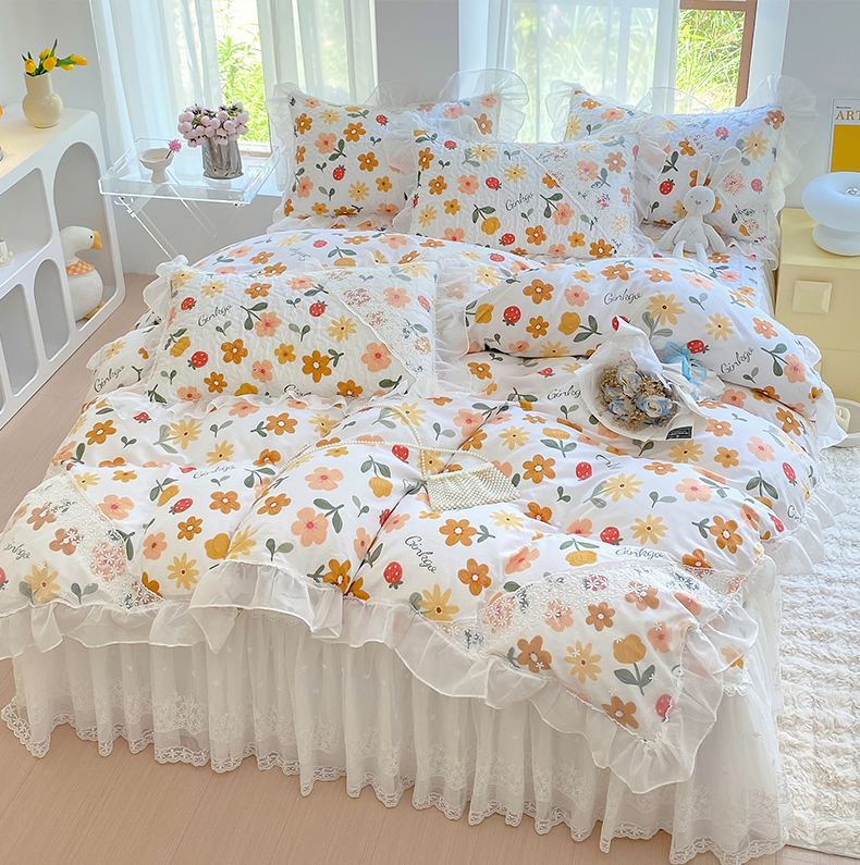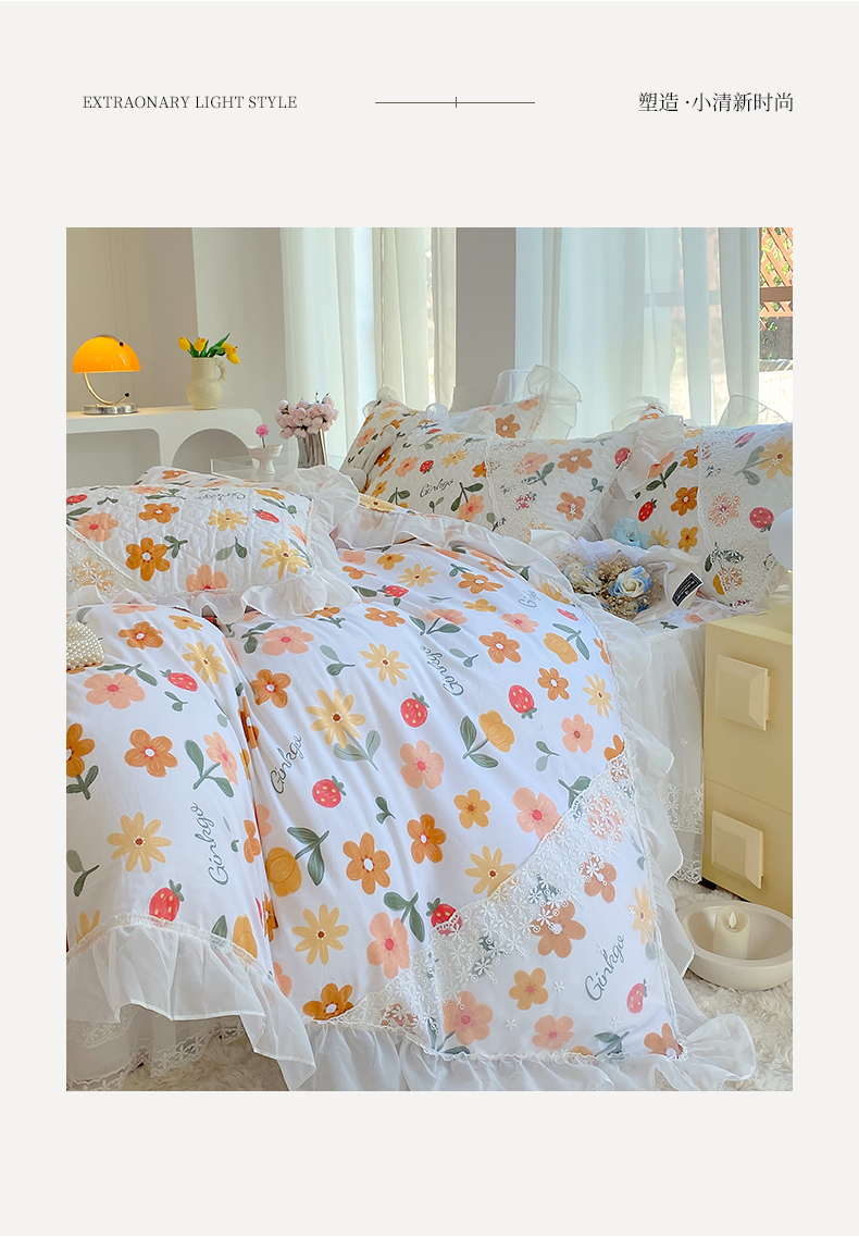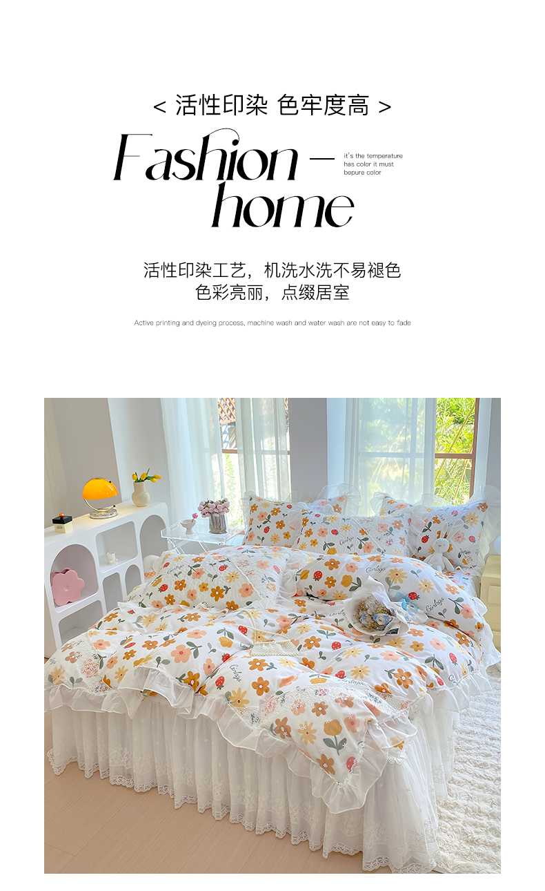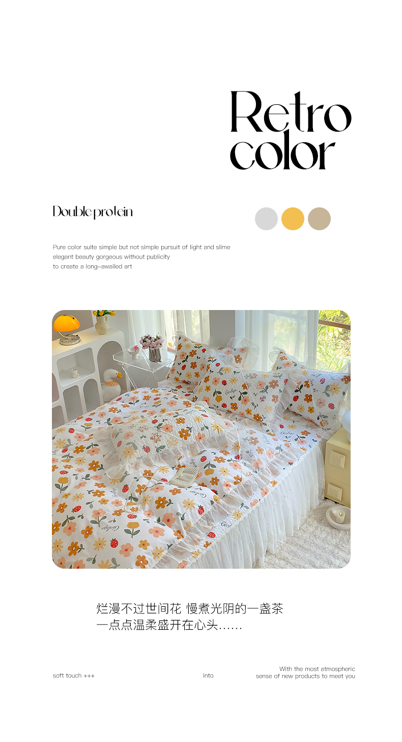 当前位置: 91家纺网 > 商品网购 > 床品套件 > 四件套 > 全棉普通四件套 > 罗艺轩家纺2024新款全棉蕾丝夹棉床裙忆江南系列-四件套 忆江南~春意