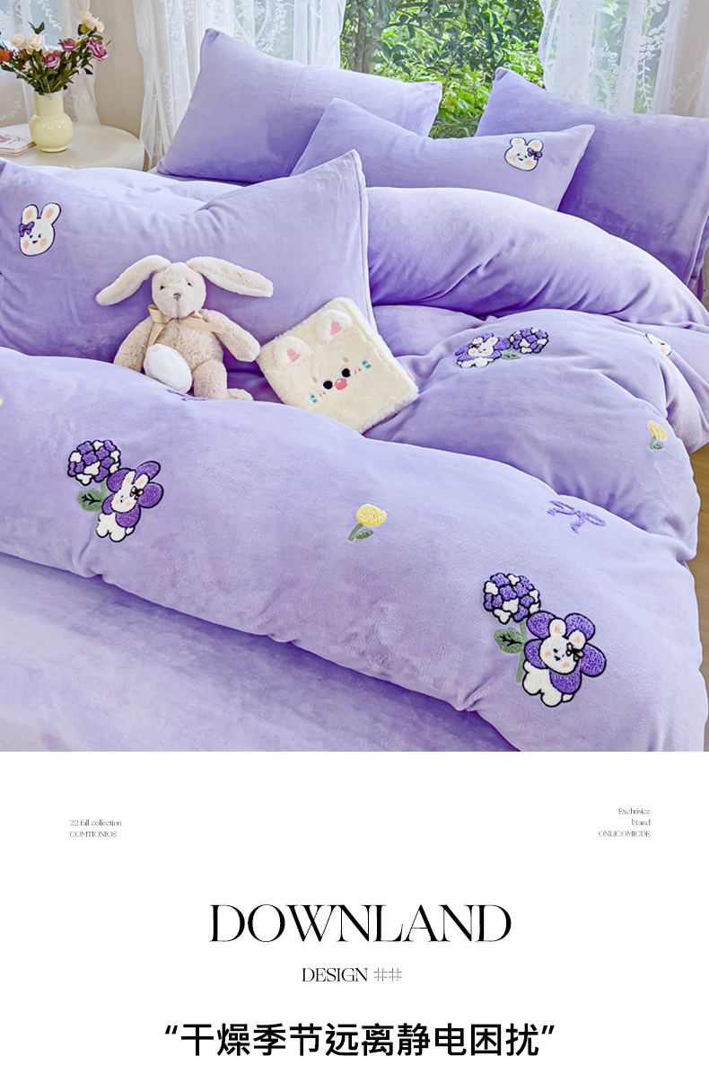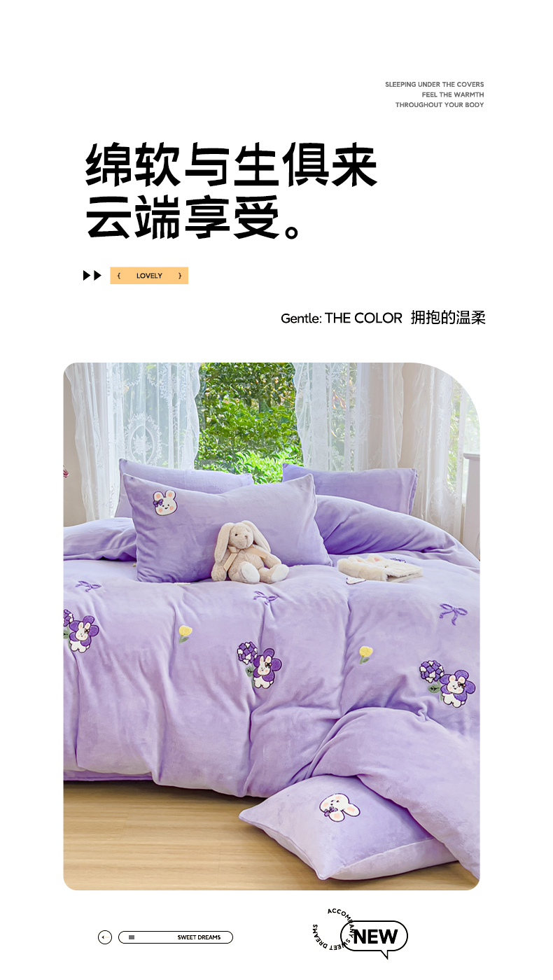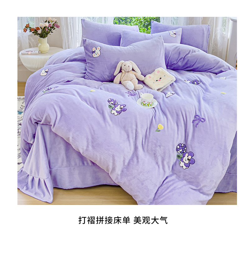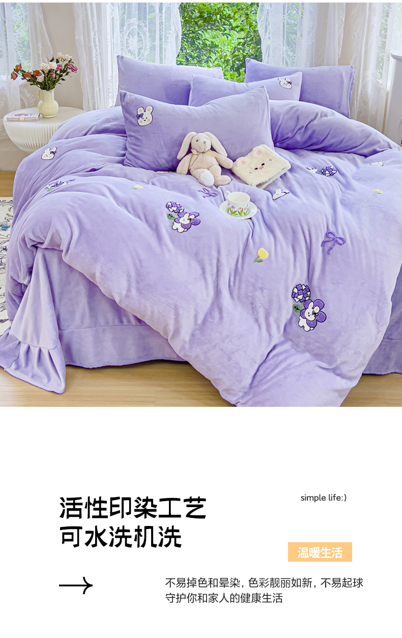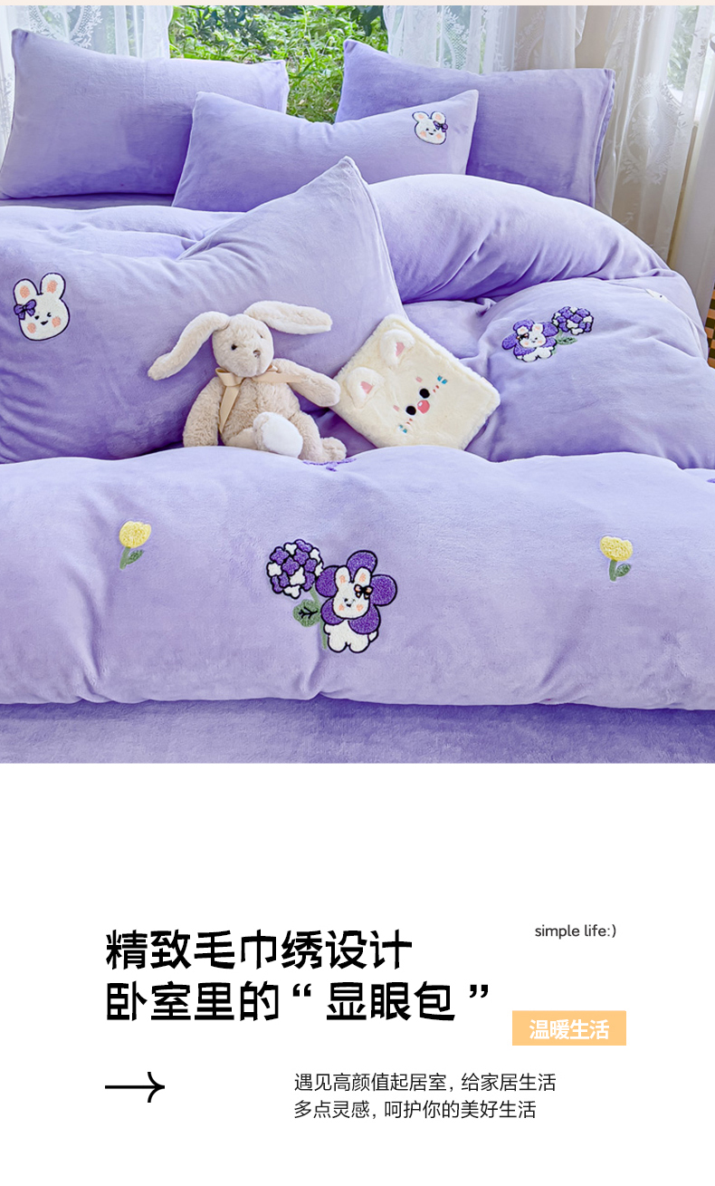商品名称:米瑞娜 2024新款纯色毛巾绣牛奶绒四件套 安妮宝贝-紫