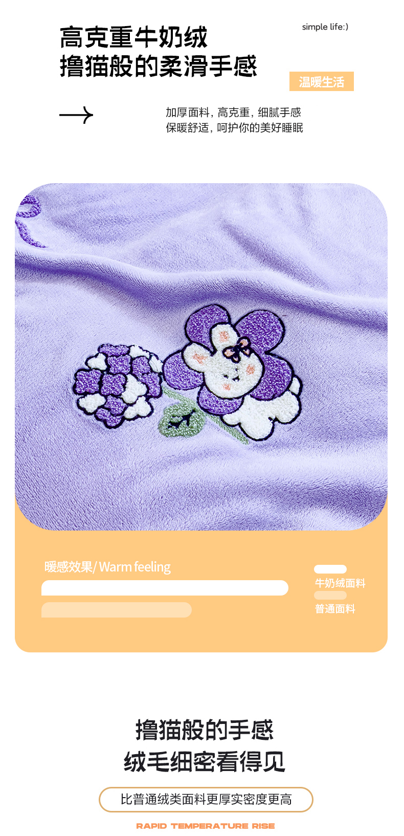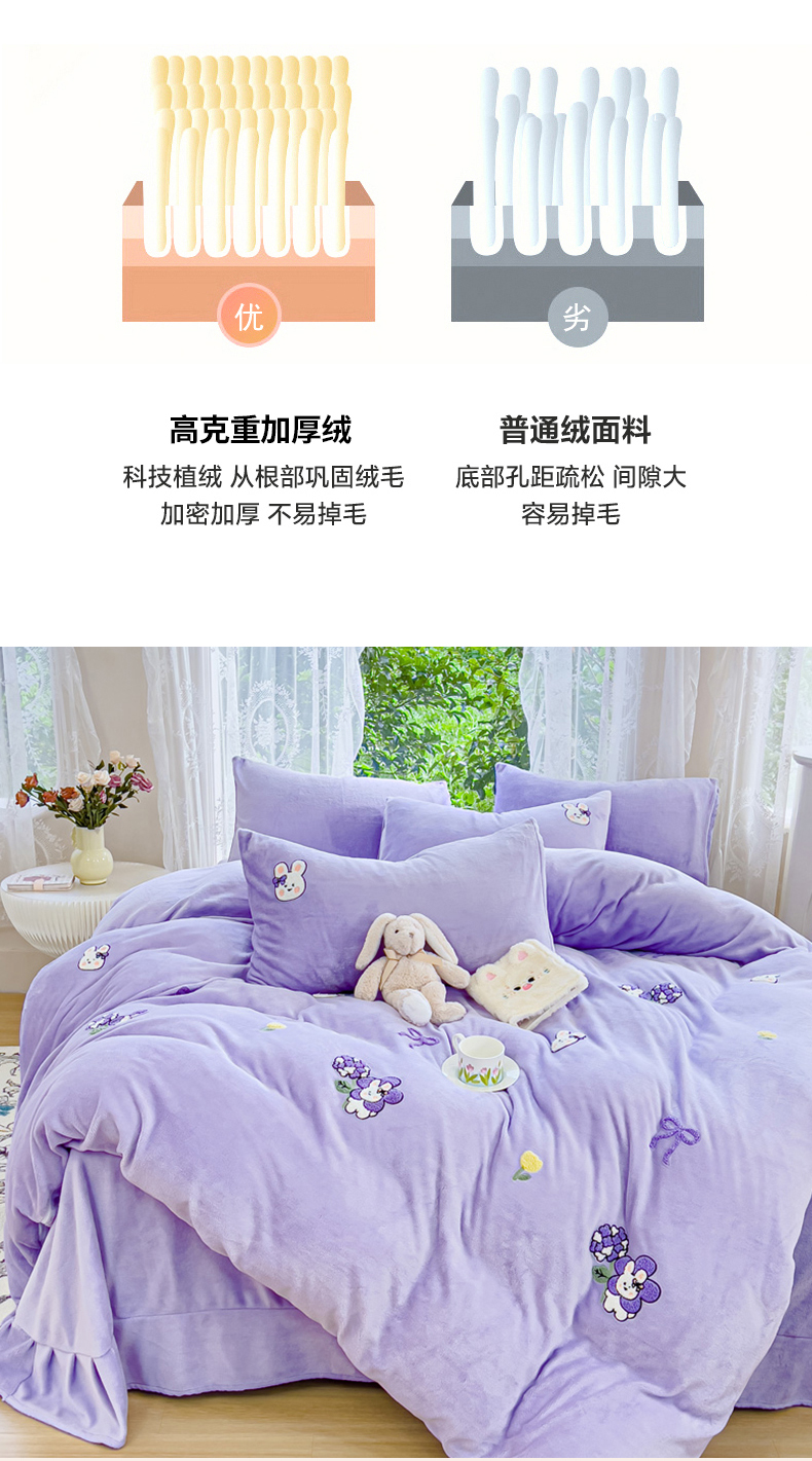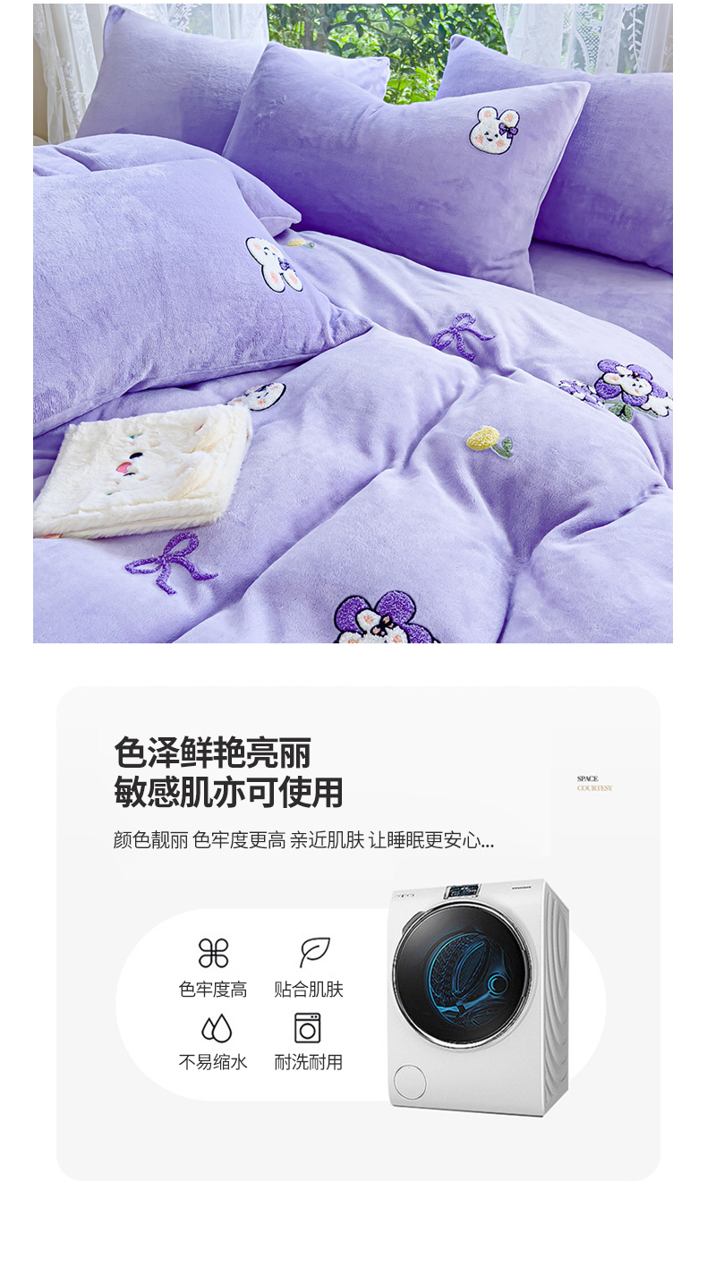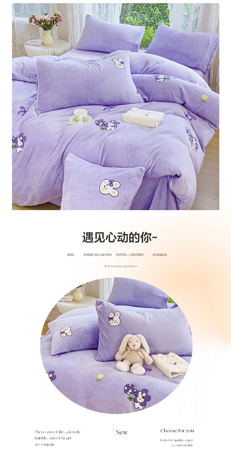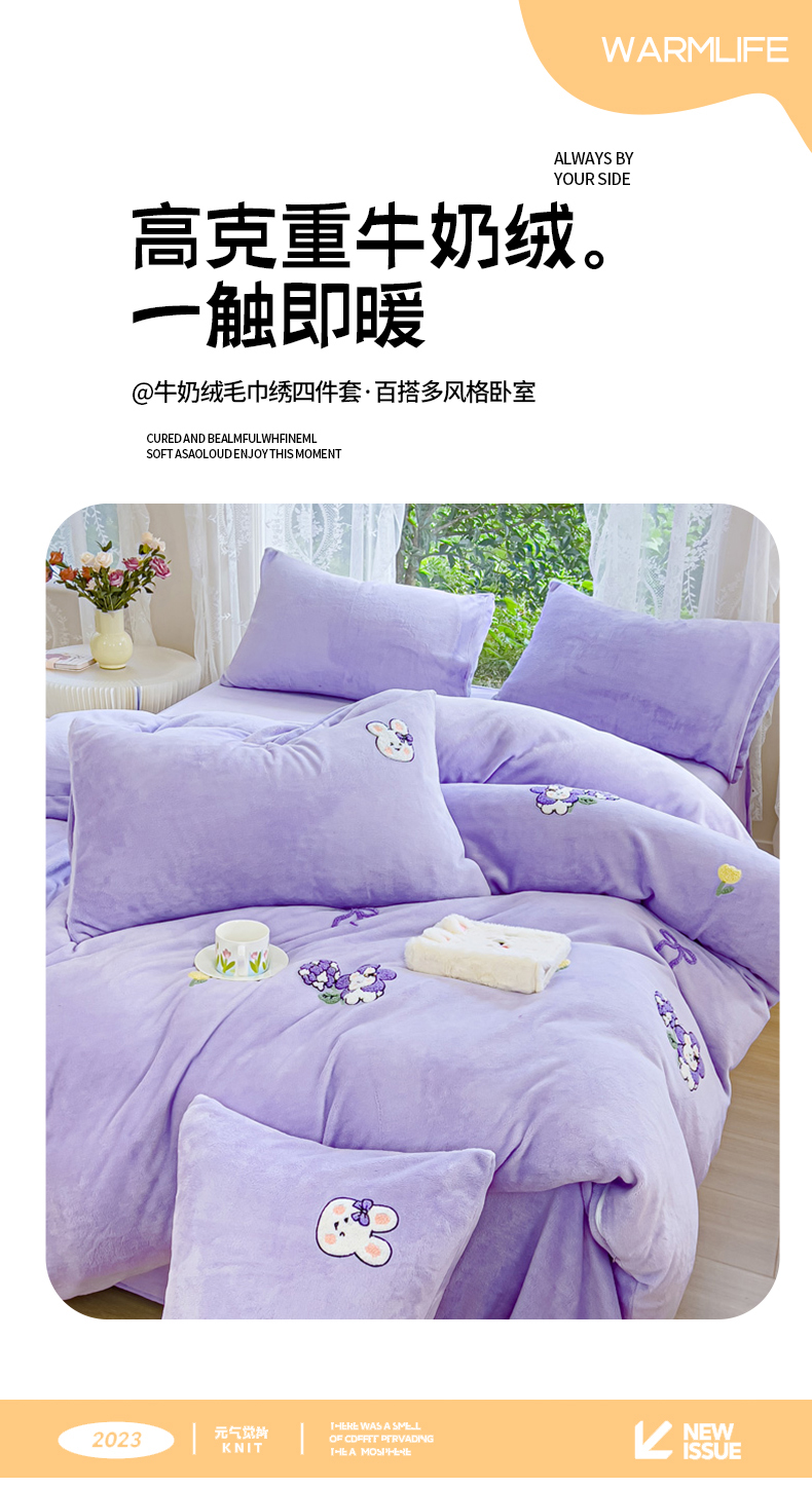 商品名称:米瑞娜 2024新款纯色毛巾绣牛奶绒四件套 安妮宝贝-紫