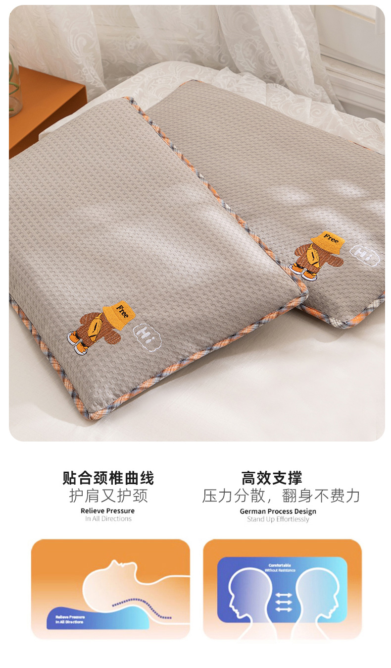 (总)织布人 2025新款枕芯7A级抗菌AIR蚕丝护颈枕头成人家用分区护颈椎枕芯,组合图,A类AIR蚕丝护颈枕-粉色,A类AIR蚕丝护颈枕-灰色